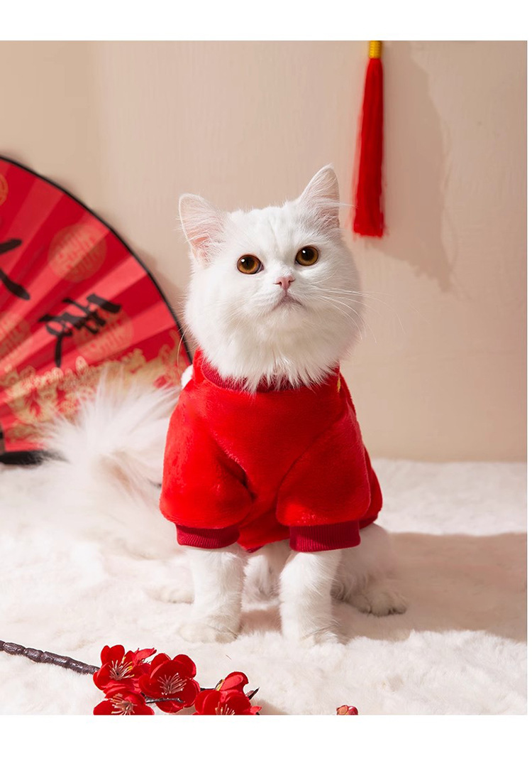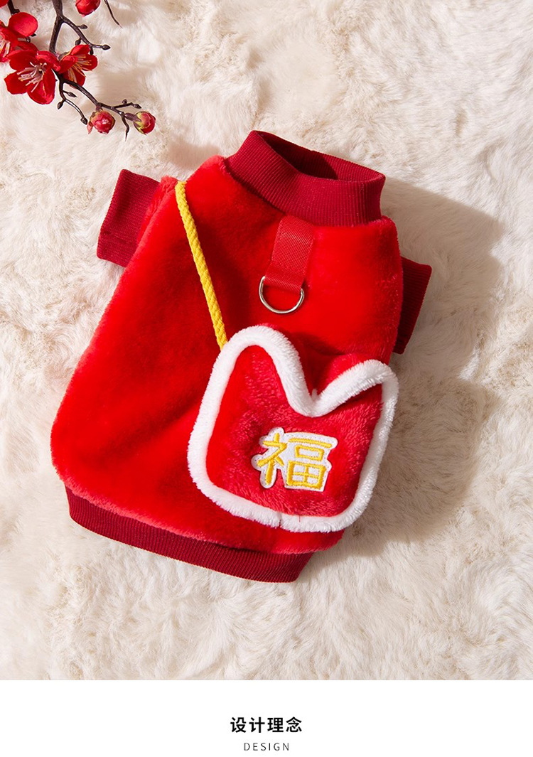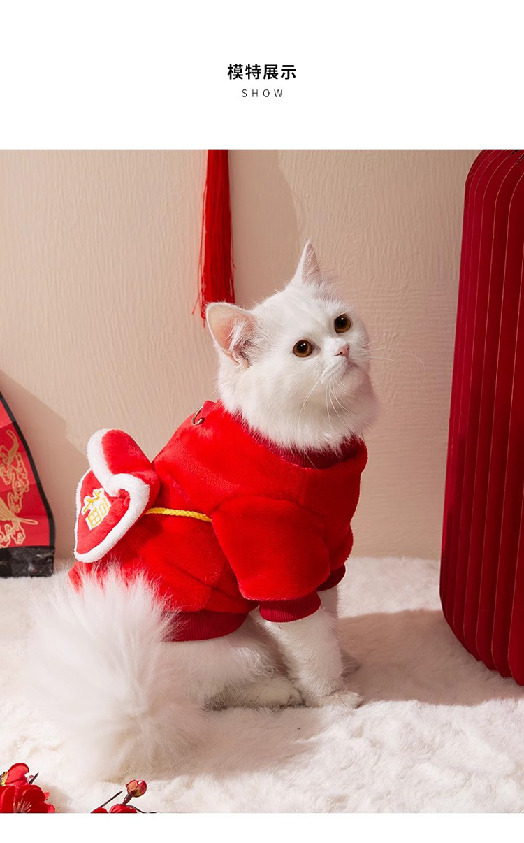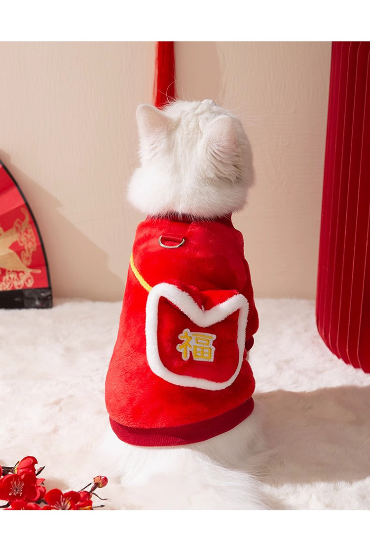 가을과 겨울 고양이 미 새해 따뜻한 새 봄 행운의 어깨 가방 견인 벨벳 옷 개 새해 축제 새해 애완 동물 옷스토어 가기