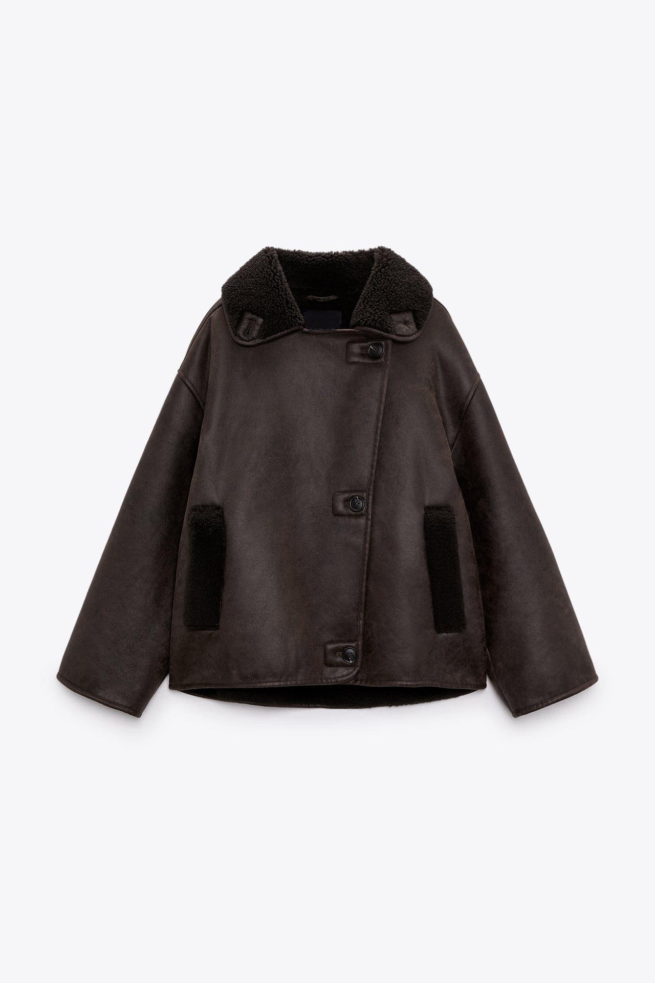 TAOP&ZA 새로운 겨울 여성 복고풍 모조 양털 옷깃 모피 일체형 양면 재킷 3548242