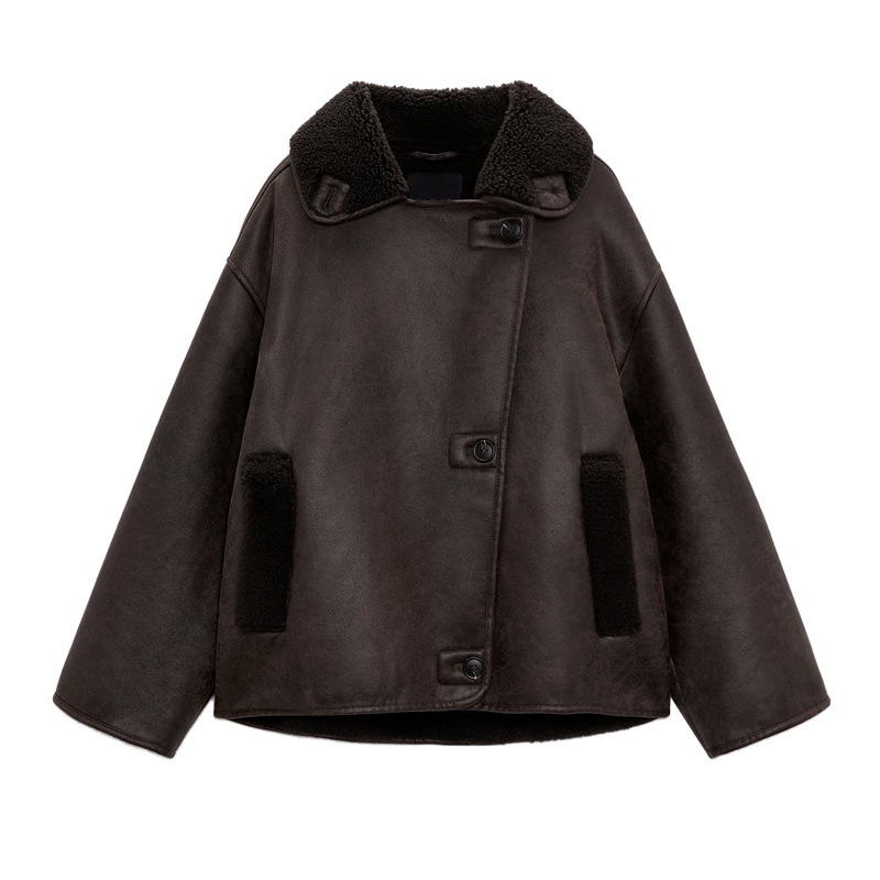 TAOP&ZA 새로운 겨울 여성 복고풍 모조 양털 옷깃 모피 일체형 양면 재킷 3548242스토어 가기