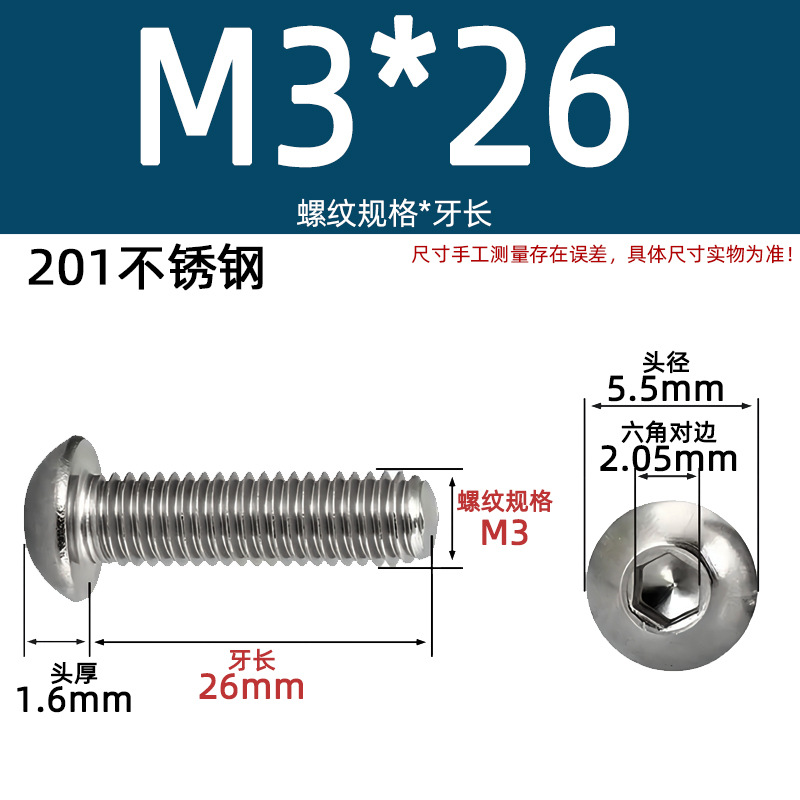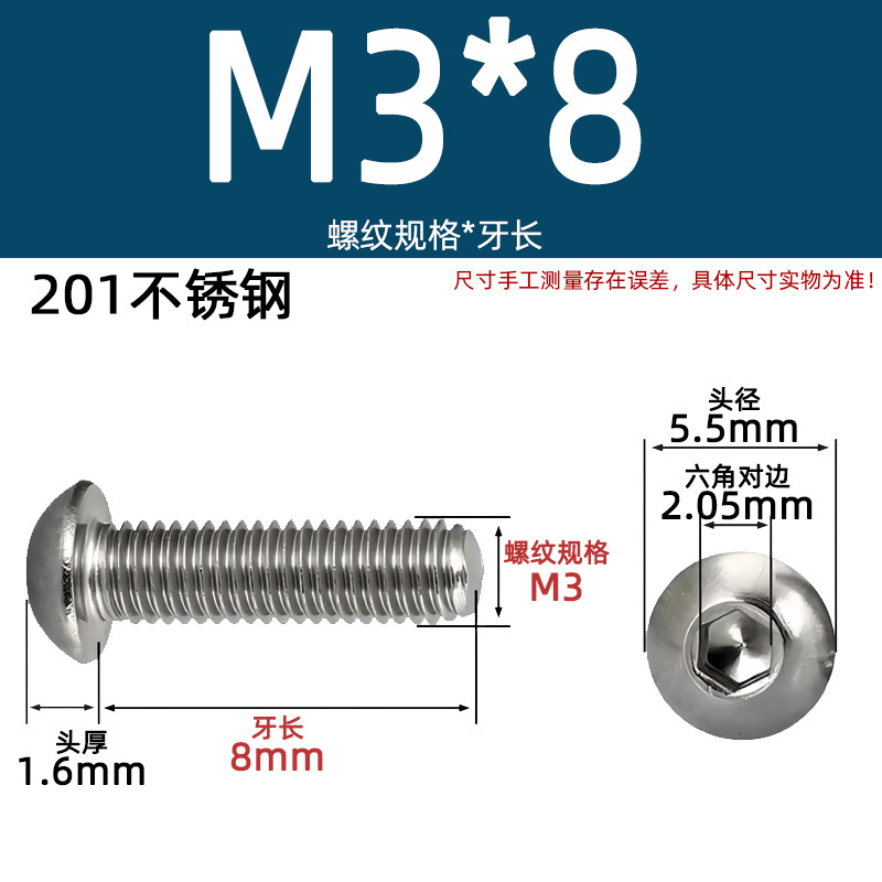 라운드 컵 플랫 라운드 헤드 육각형 기계 와이어 201 스테인레스 스틸 304 라운드 컵 GB /T 70.2 M3스토어 가기