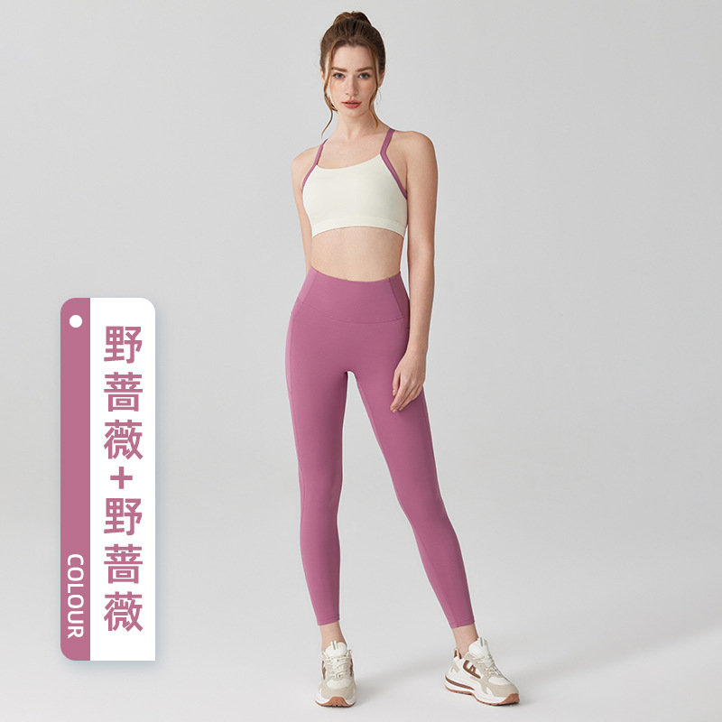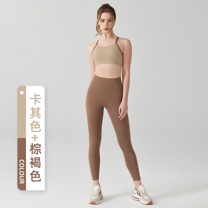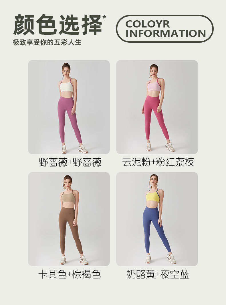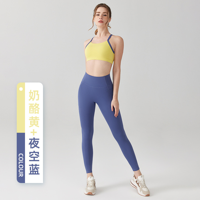 요가 의류 세트 여성 엉덩이 리프팅 배꼽 계약 Xingqing 바지 뷰티 백 컬러 매칭 충격 방지 고정 컵 스포츠 속옷 피트니스 세트