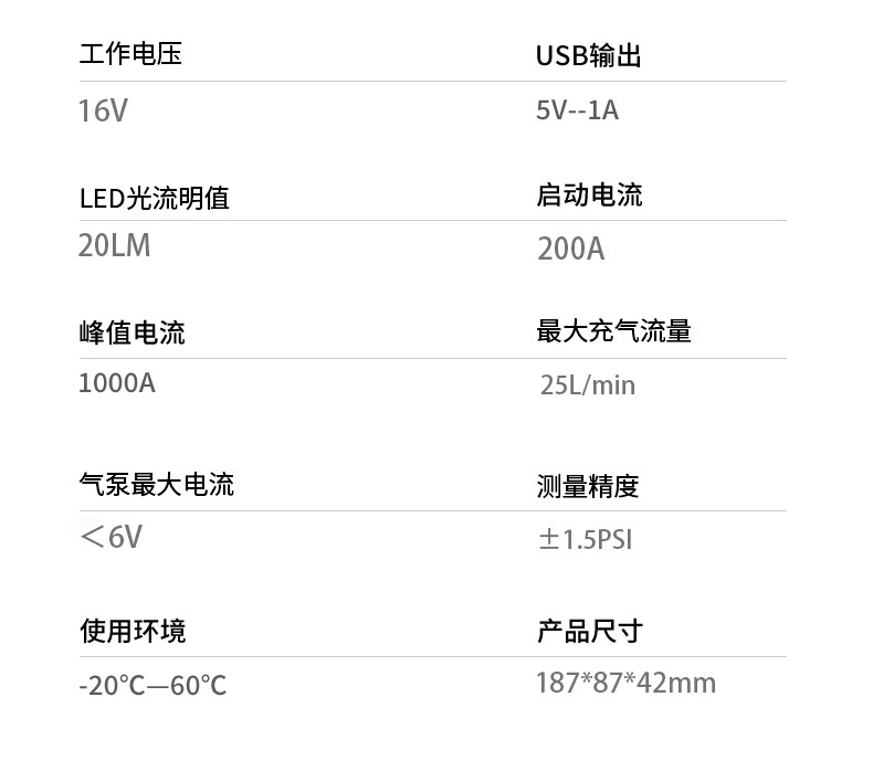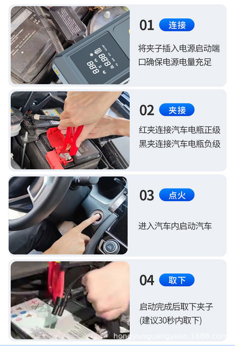 • 8000 mAh* 시동 전원 공급 장치 공기 펌프 일체형 기계(지능형 역전 방지 배터리 클램프) Q8L