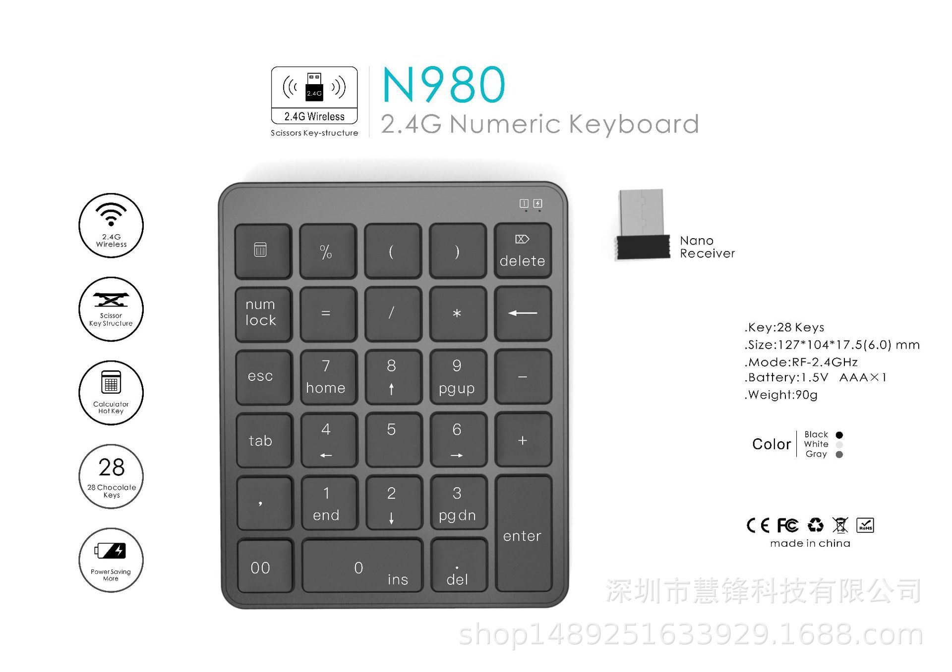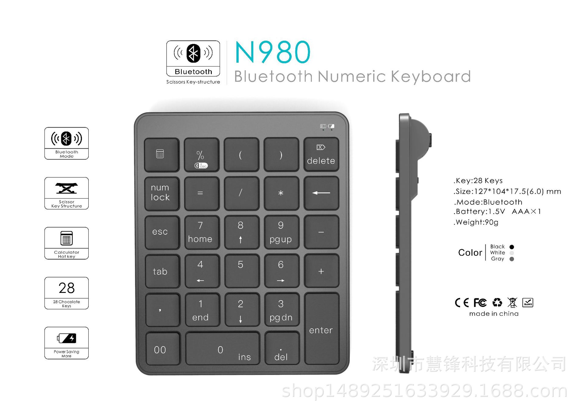 재고 도매 배터리 버전 28 키 가위 발 숫자 키보드 2.4g 무선 키보드 블루투스 듀얼 모드 숫자 키보드