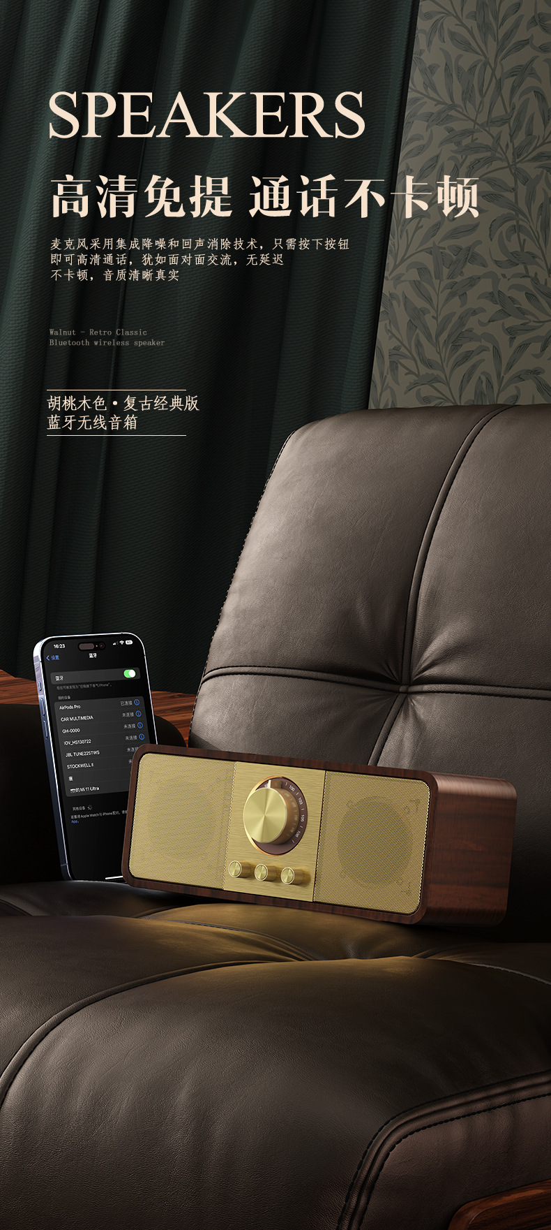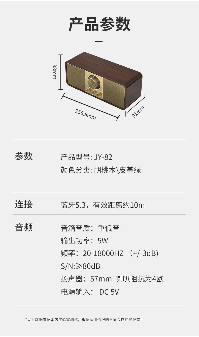 2024 새로운 개인 모델 JY-82 복고풍 블루투스 스피커 FM 라디오 솔리드 우드 서브 우퍼 블루투스 오디오 하이 엔드