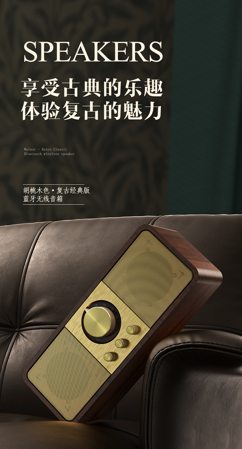 2024 새로운 개인 모델 JY-82 복고풍 블루투스 스피커 FM 라디오 솔리드 우드 서브 우퍼 블루투스 오디오 하이 엔드스토어 가기