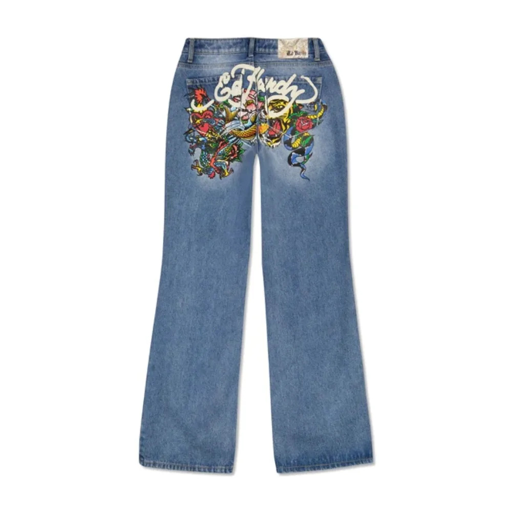 국경 간 폭발 여성 청바지 미국 힙합 유행 꽃 편지 인쇄 패션 넓은 다리 느슨한 직선 바지스토어 가기