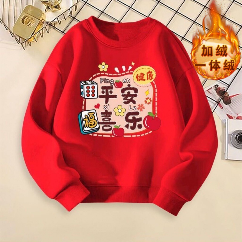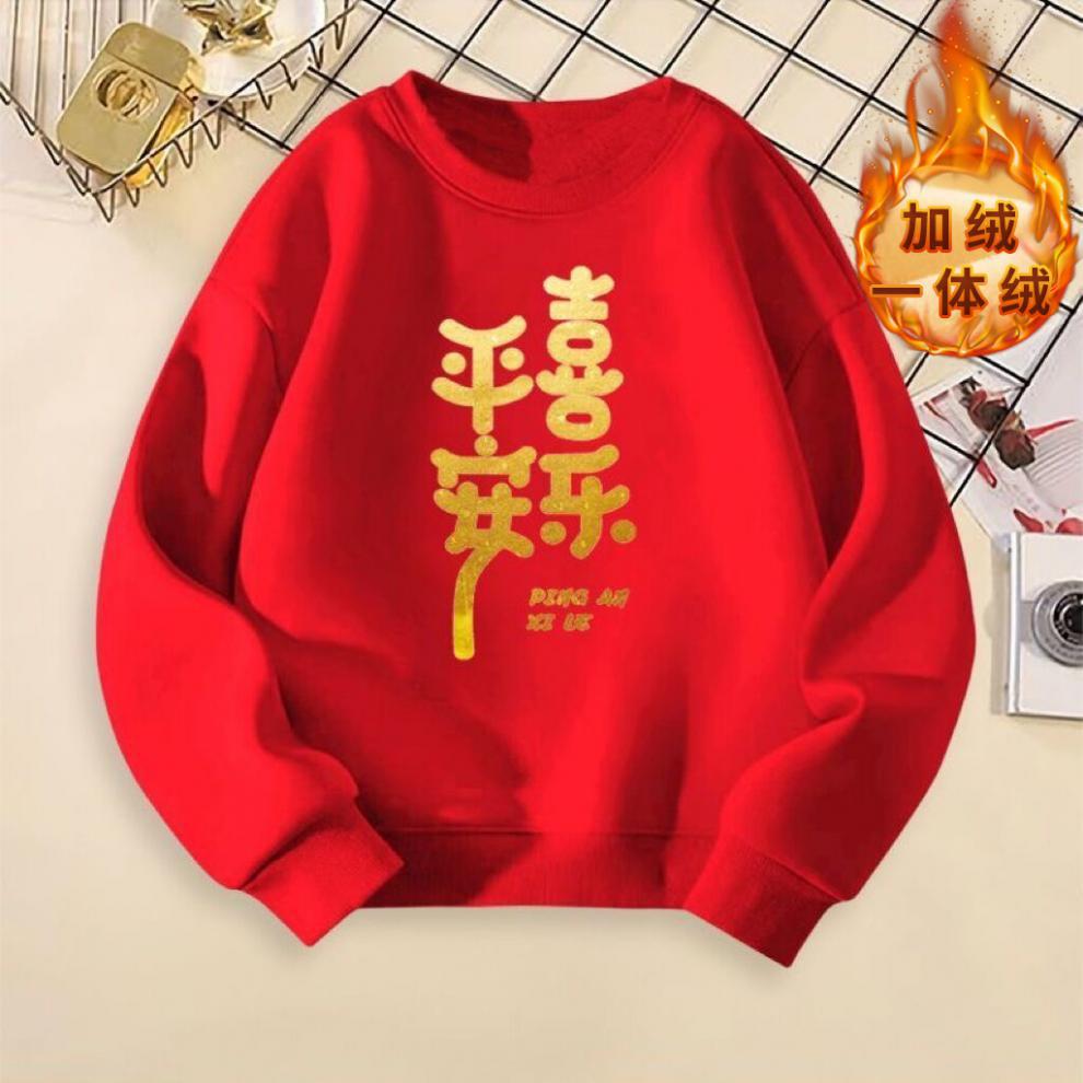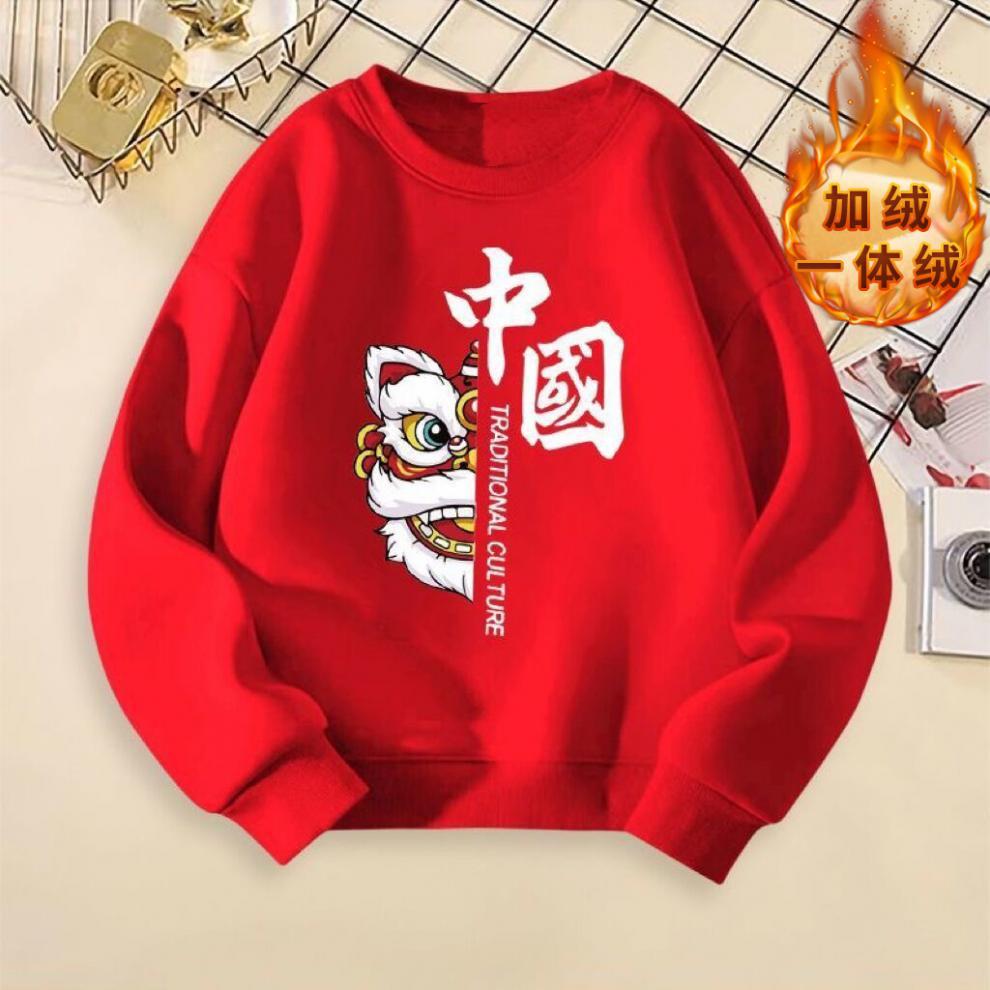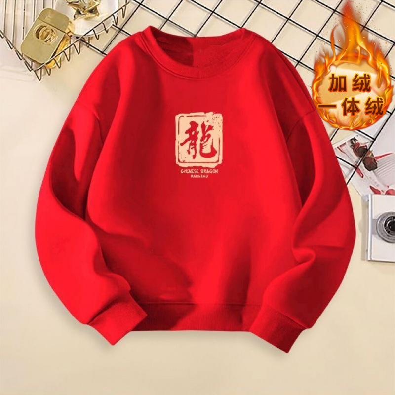 어린이 스웨터 원피스 벨벳 소년 소녀 중국 스타일 2024 새해 둥근 목 붉은 설날 활동 수업 옷 탑 T스토어 가기