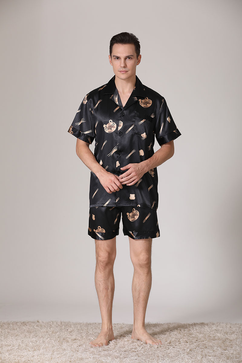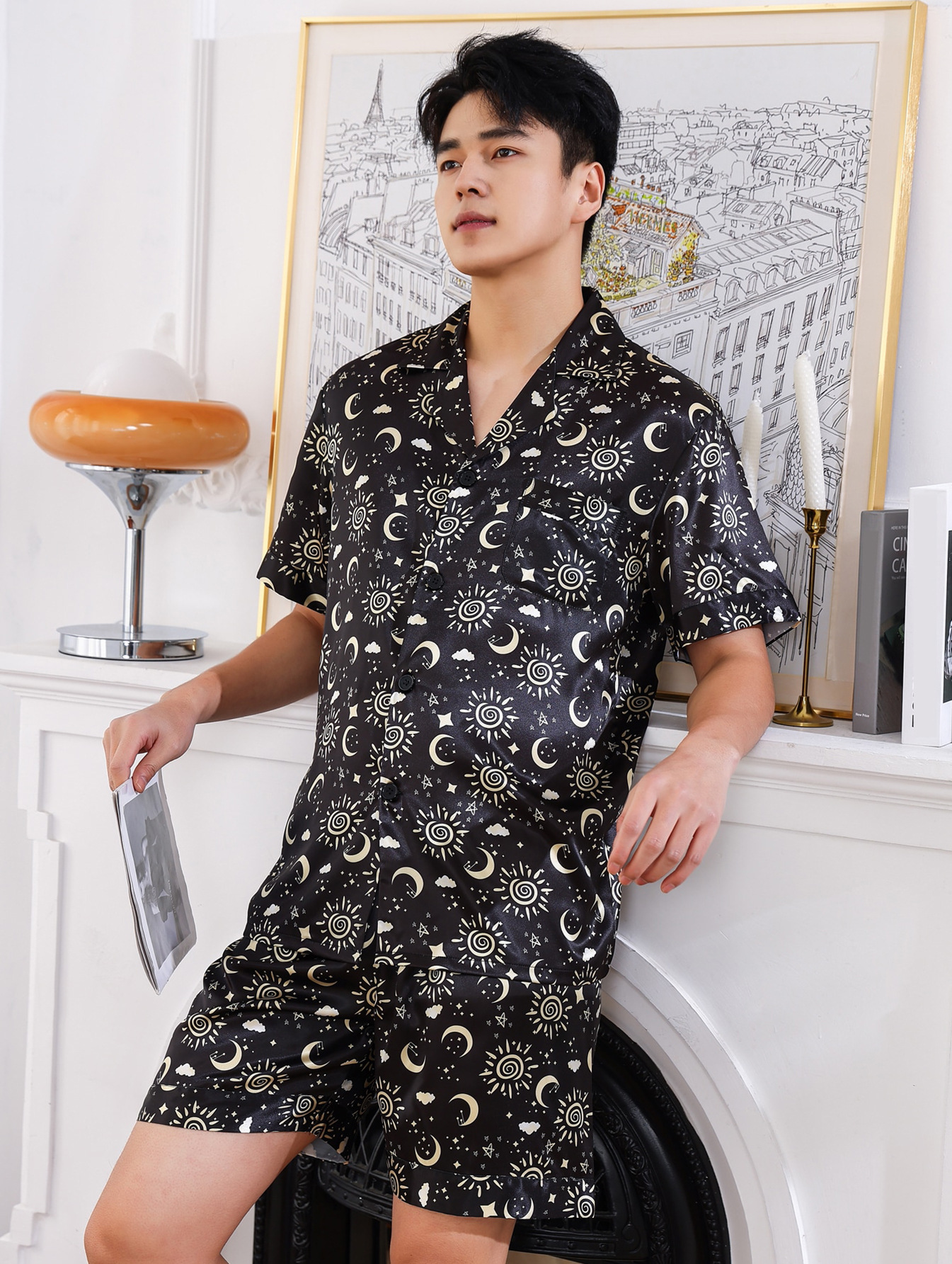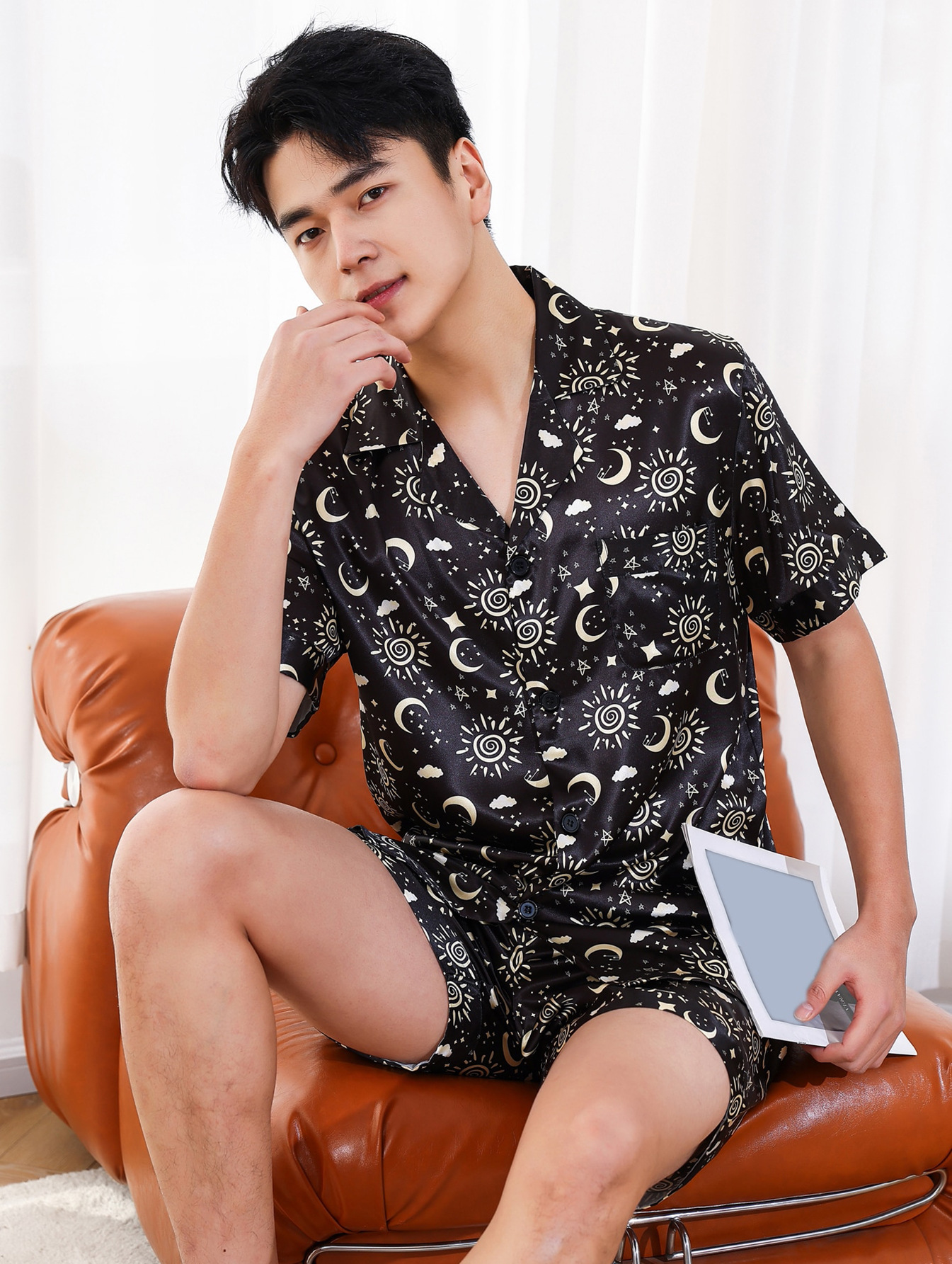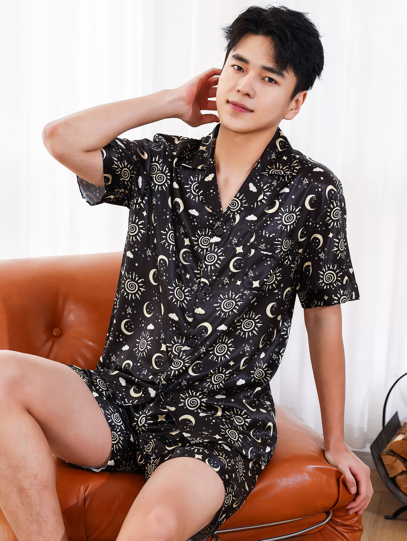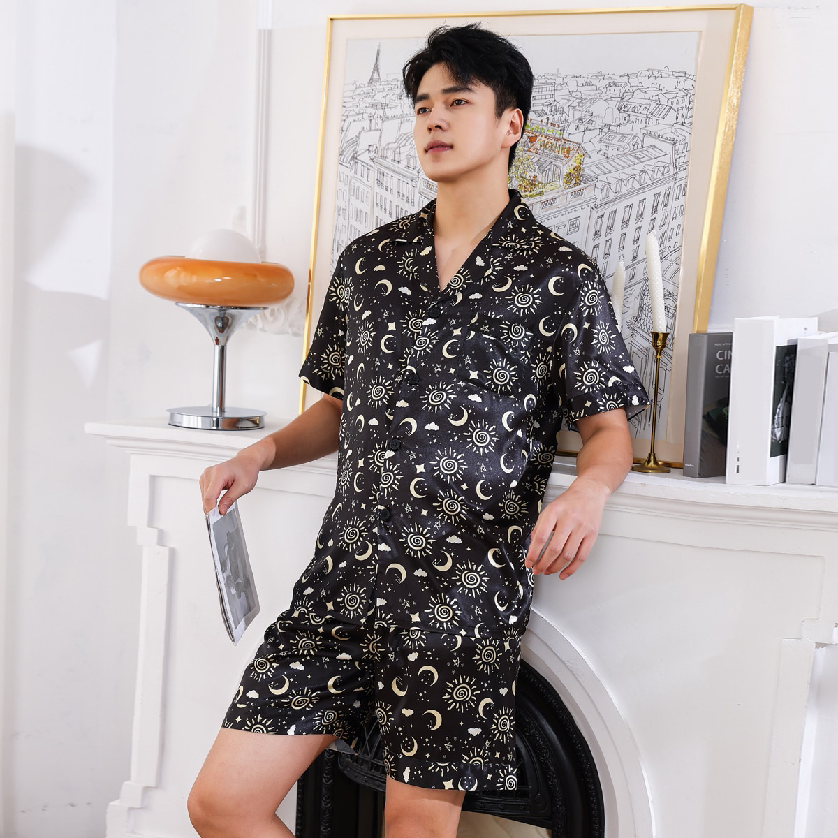 국경 간 유럽 사이즈 남성 플러스 사이즈 느슨한 홈웨어 여름 남성 통기성 얇은 반팔 반바지 아이스 실크 파자마 세트스토어 가기