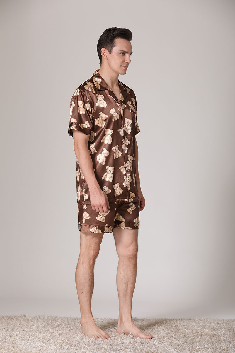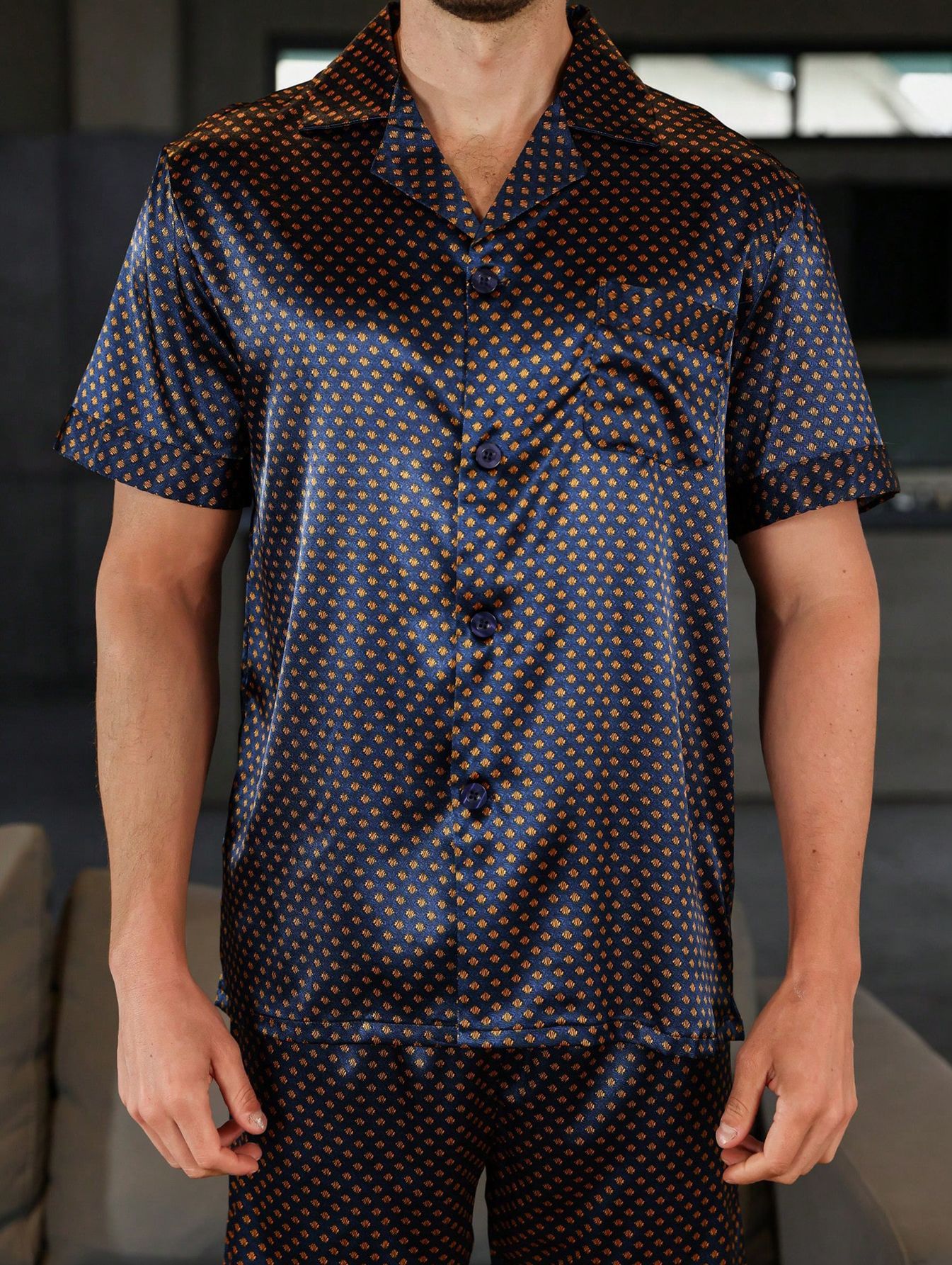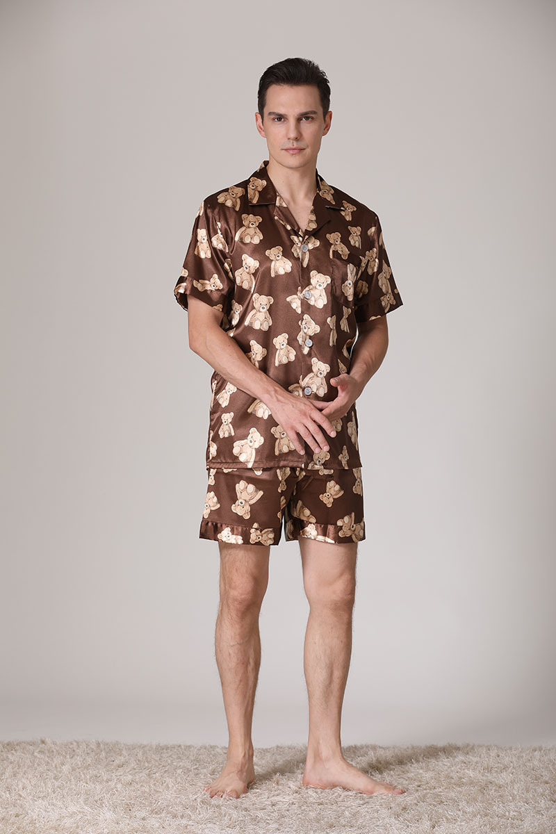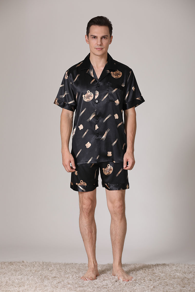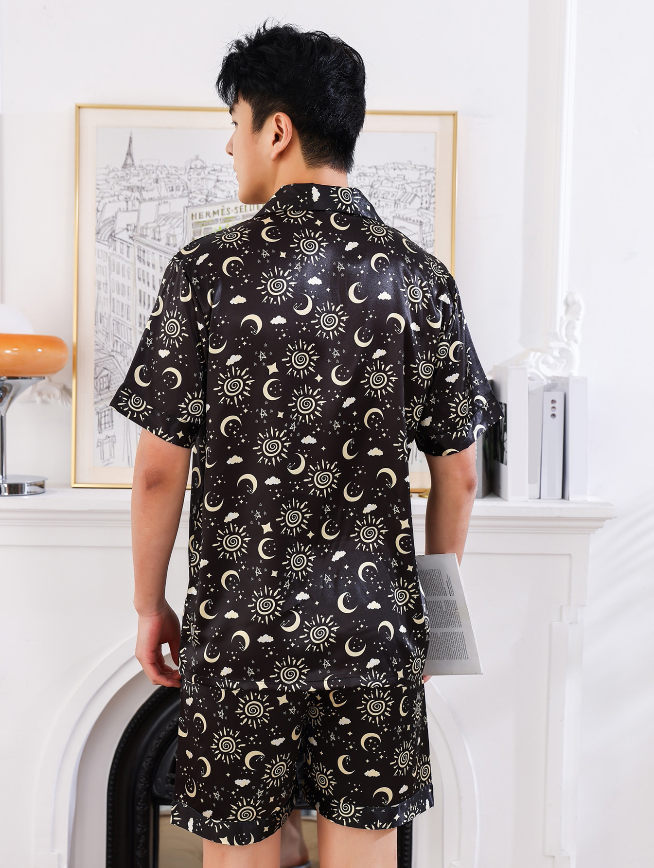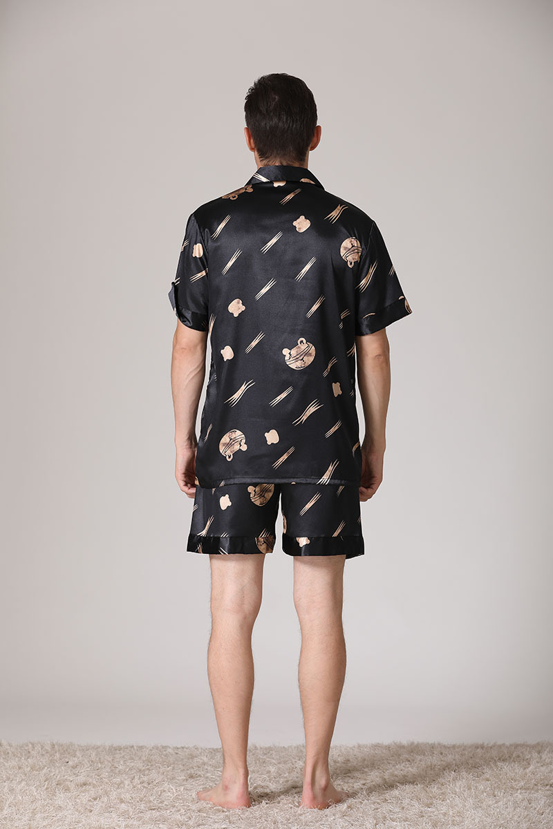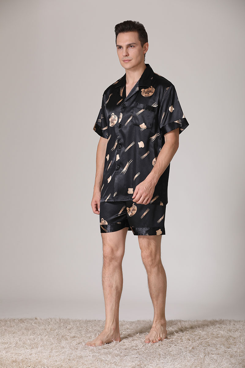 국경 간 유럽 사이즈 남성 플러스 사이즈 느슨한 홈웨어 여름 남성 통기성 얇은 반팔 반바지 아이스 실크 파자마 세트스토어 가기