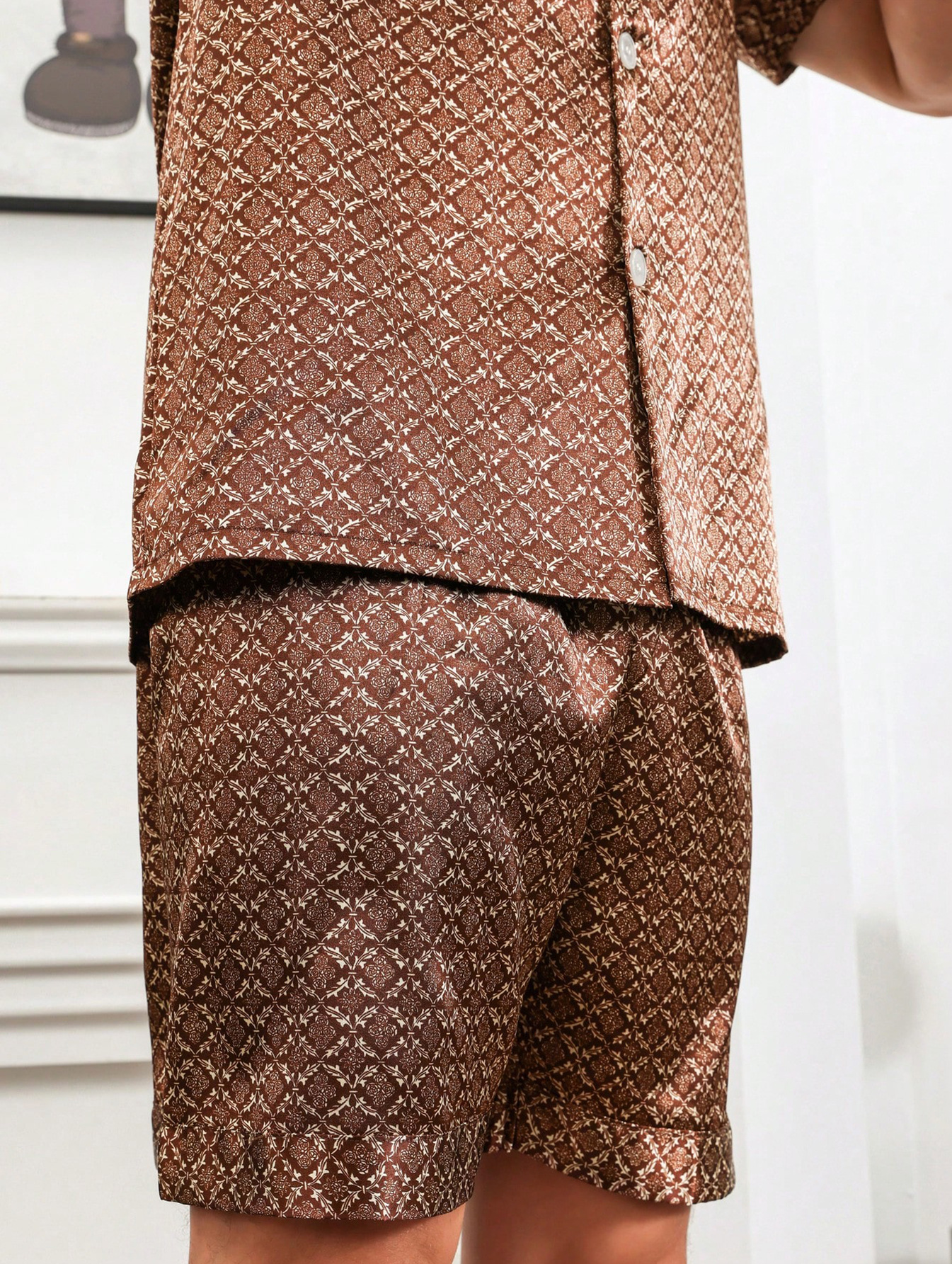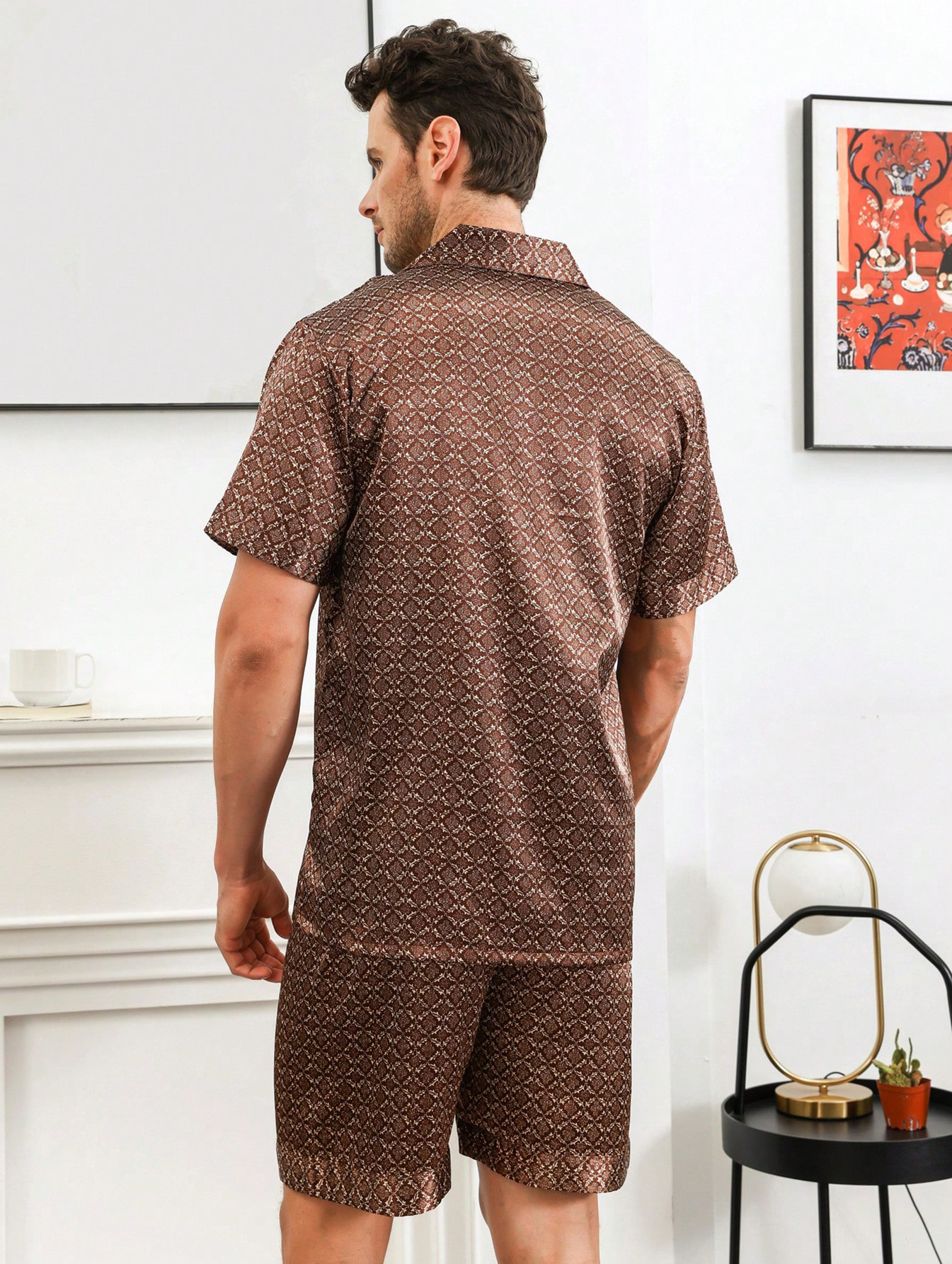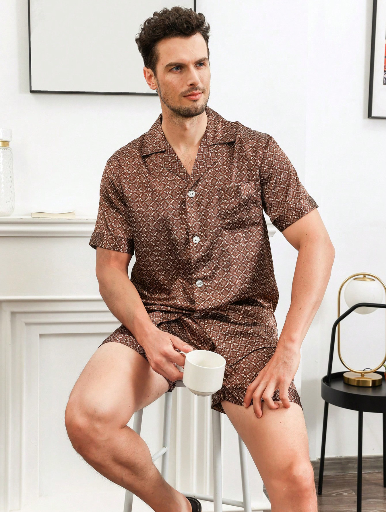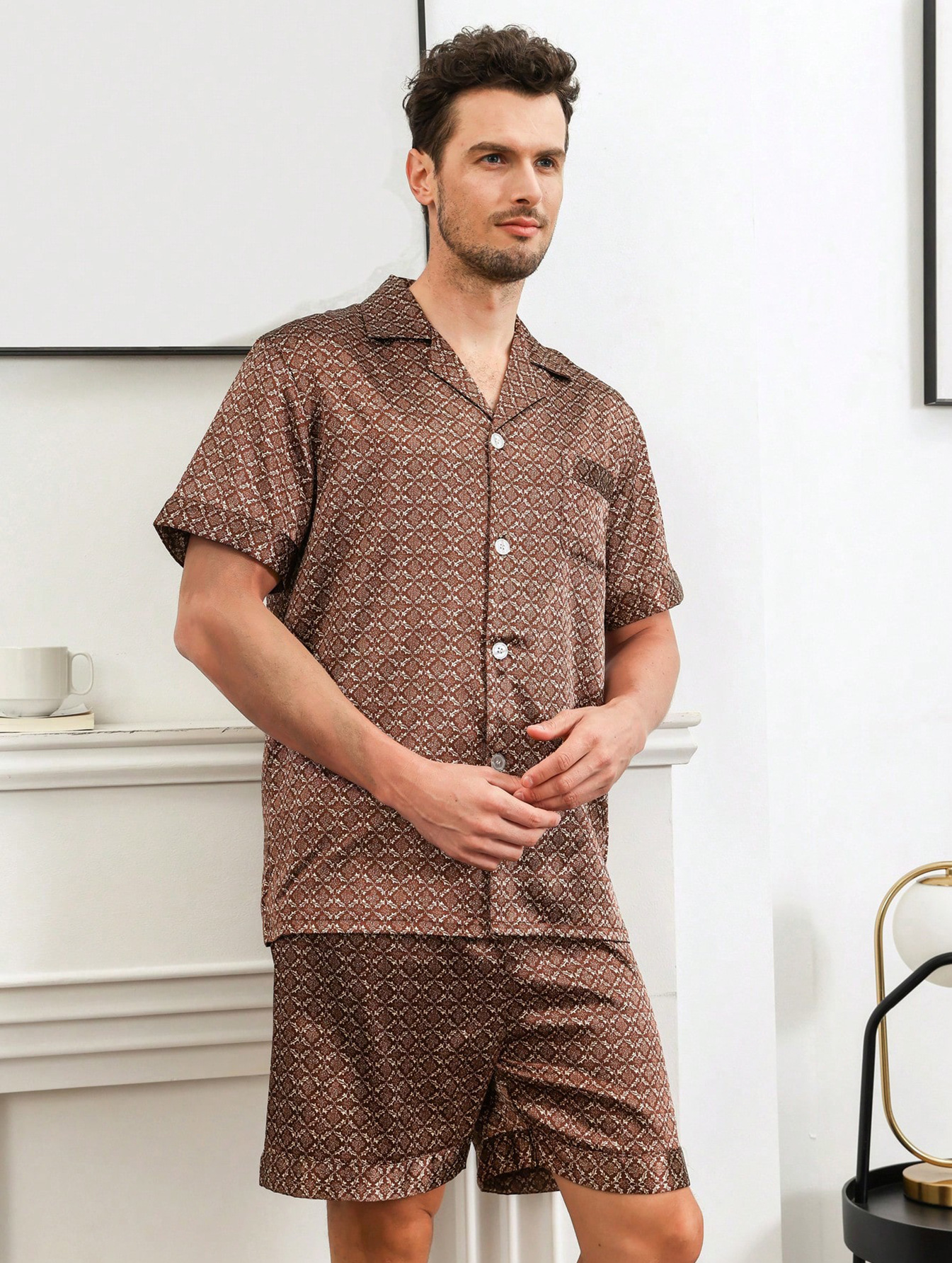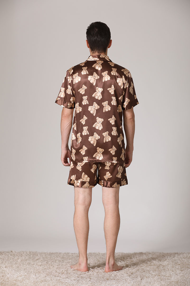 국경 간 유럽 사이즈 남성 플러스 사이즈 느슨한 홈웨어 여름 남성 통기성 얇은 반팔 반바지 아이스 실크 파자마 세트스토어 가기