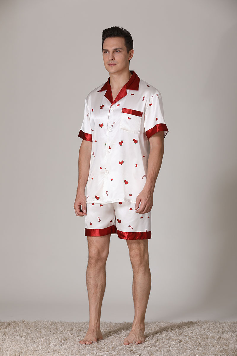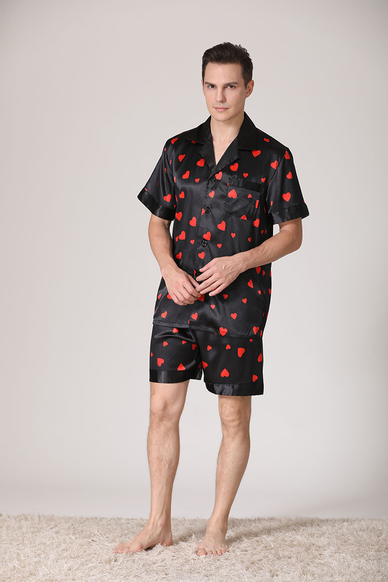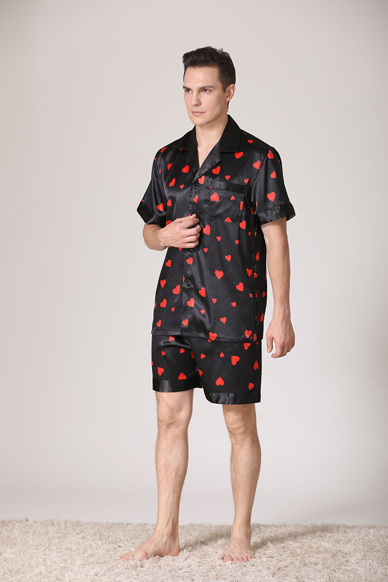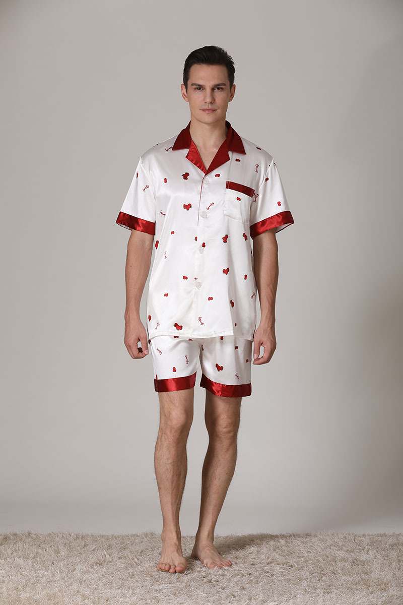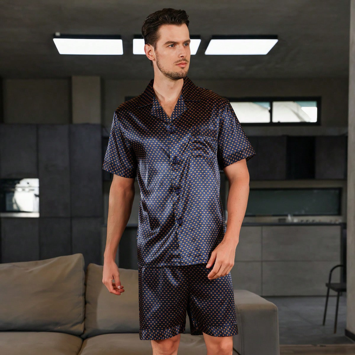 국경 간 유럽 사이즈 남성 플러스 사이즈 느슨한 홈웨어 여름 남성 통기성 얇은 반팔 반바지 아이스 실크 파자마 세트