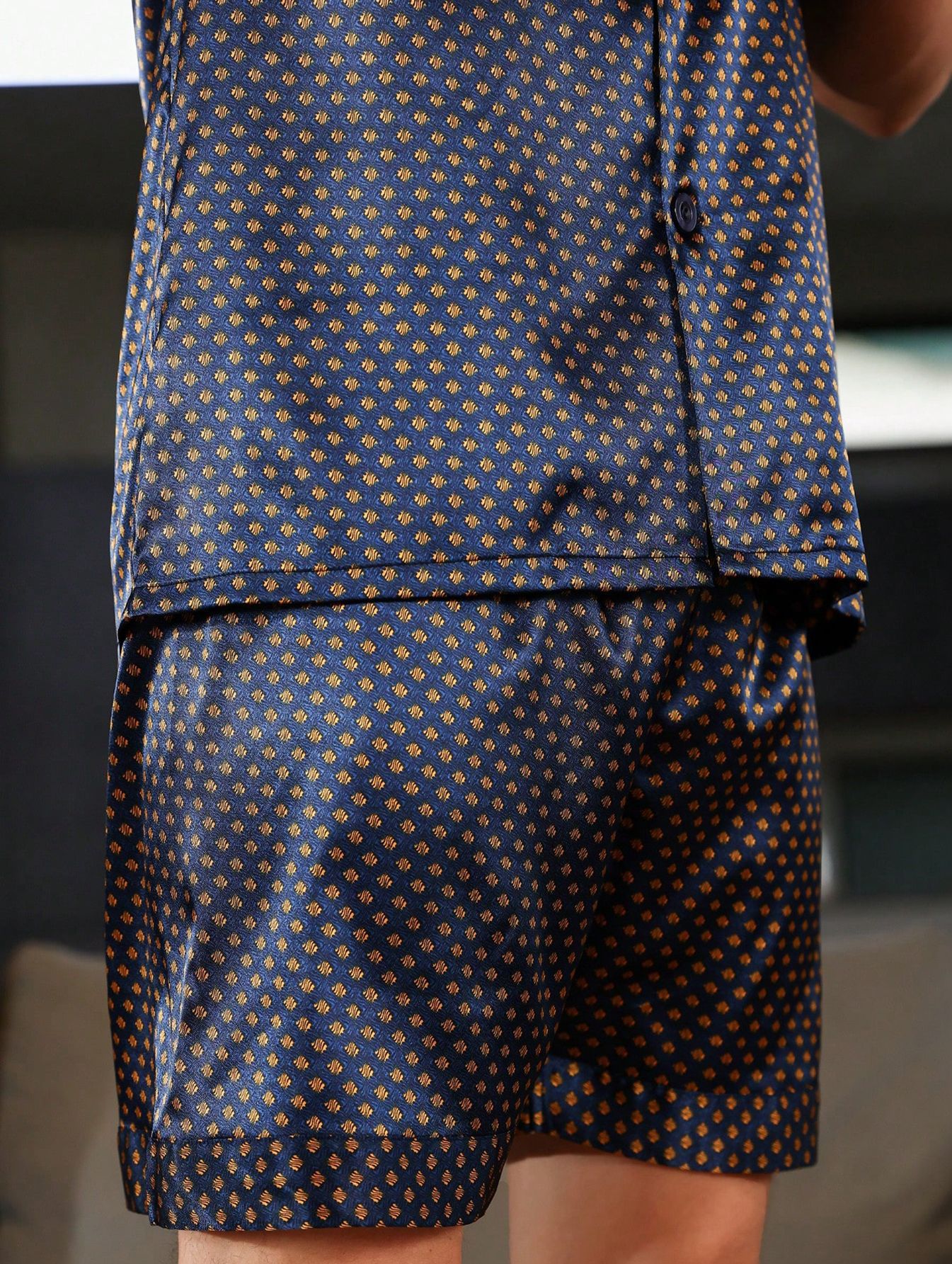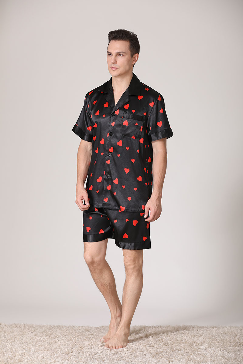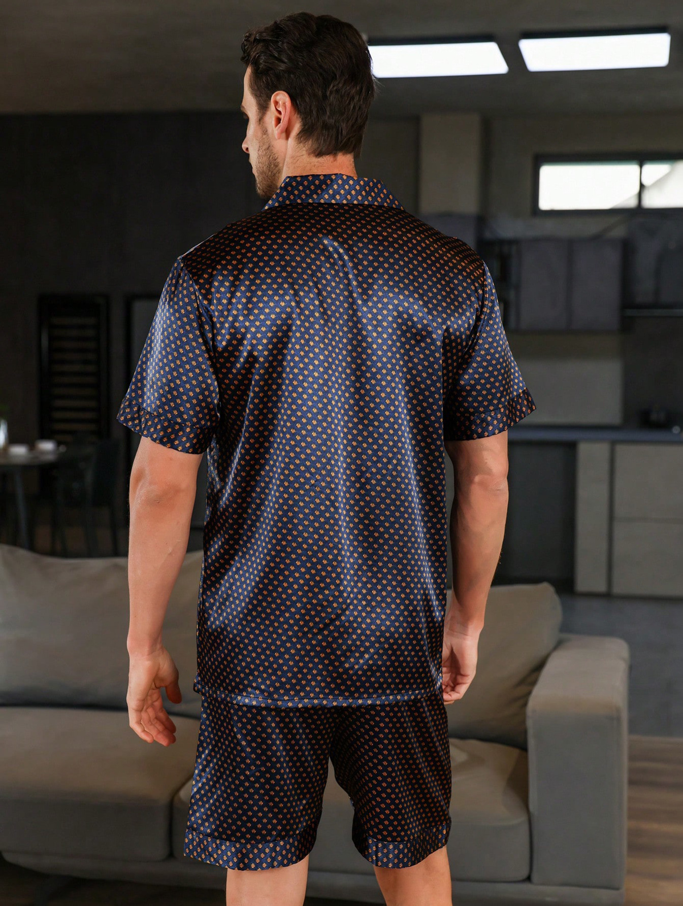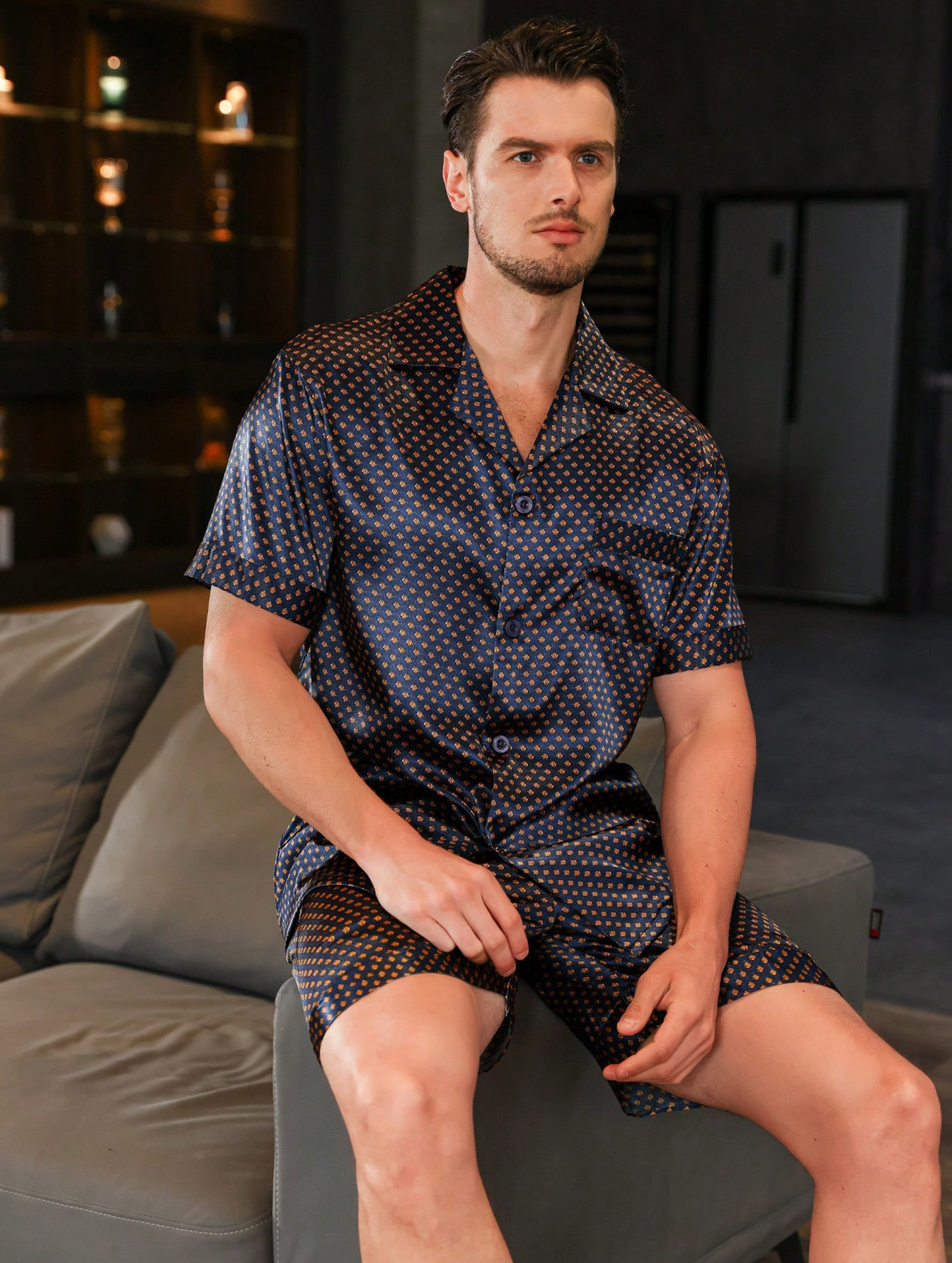 국경 간 유럽 사이즈 남성 플러스 사이즈 느슨한 홈웨어 여름 남성 통기성 얇은 반팔 반바지 아이스 실크 파자마 세트