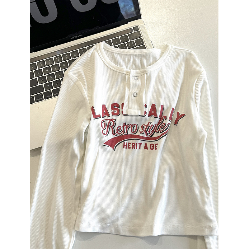 아동용 긴팔 티셔츠 2025 가을 스타일 여아 패셔너블한 짧은 레터 밑단 셔츠, 중대형 아동 캐주얼 다용도 상의스토어 가기