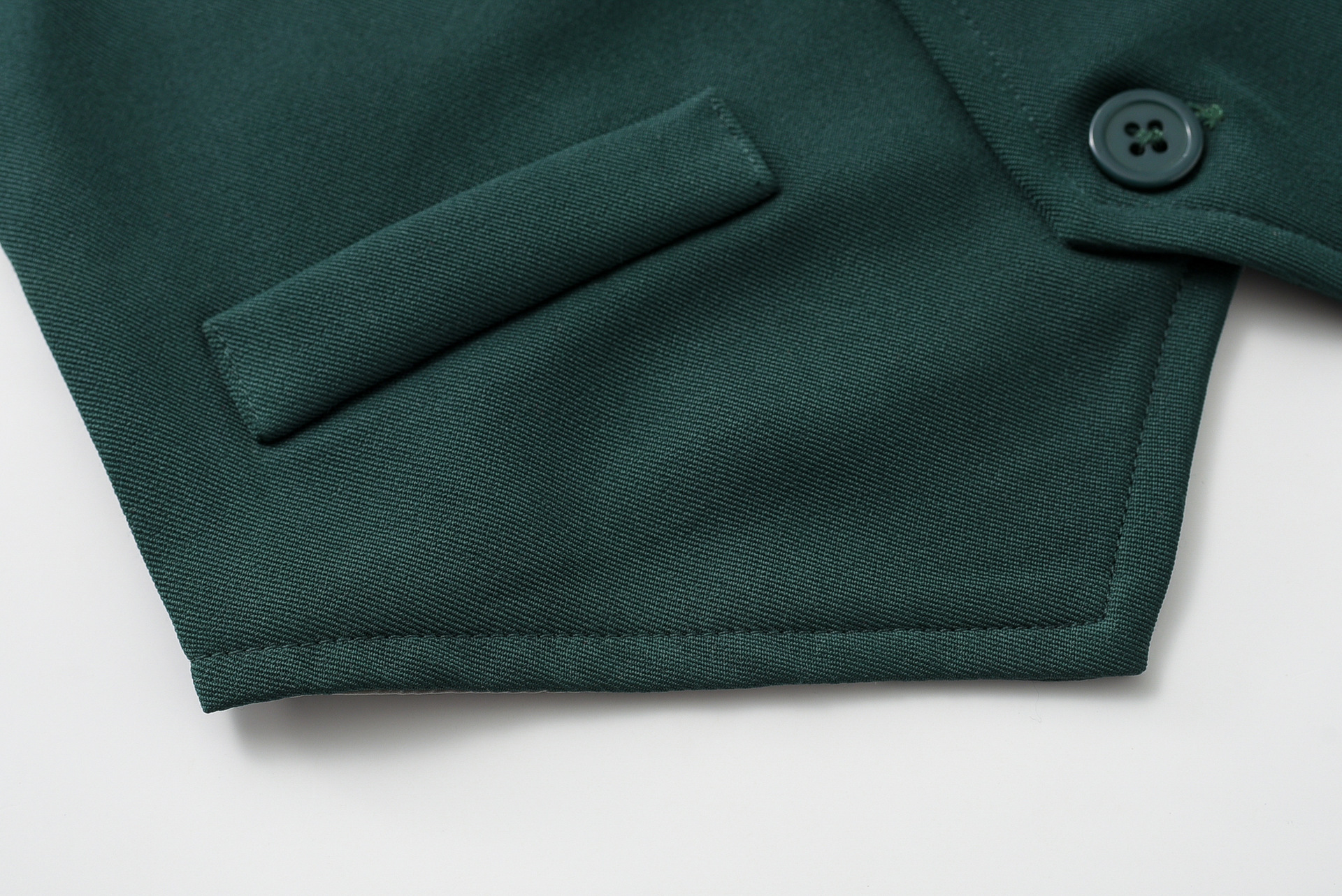 • 다크 그린 조끼 + 바지 + 셔츠 스트랩 + 활 + corsage