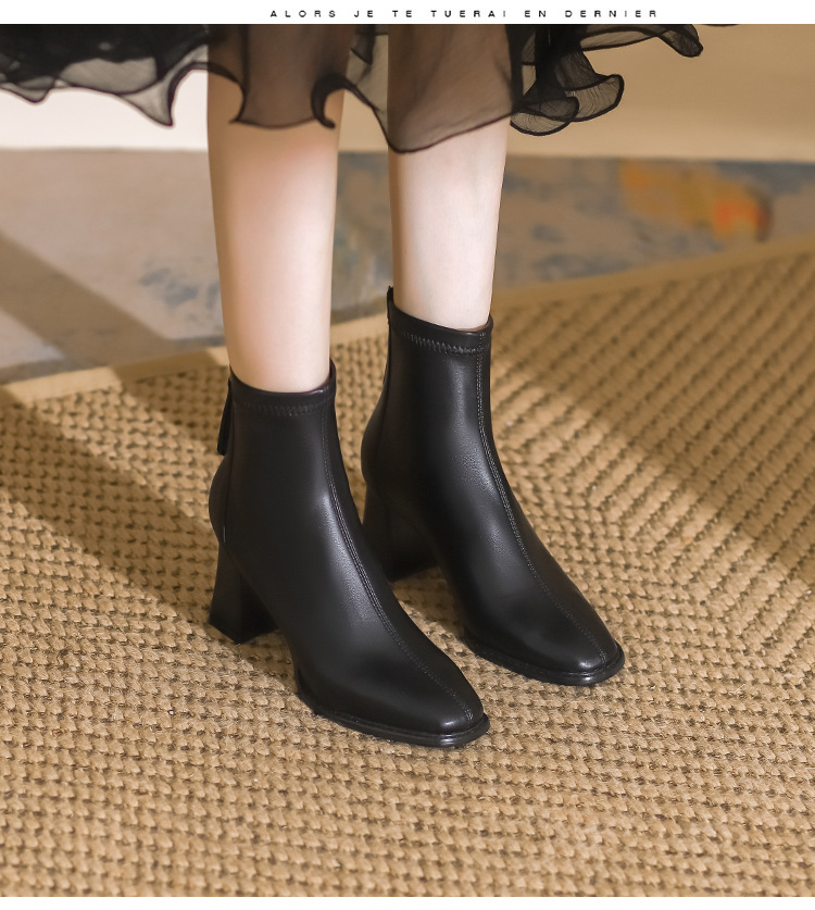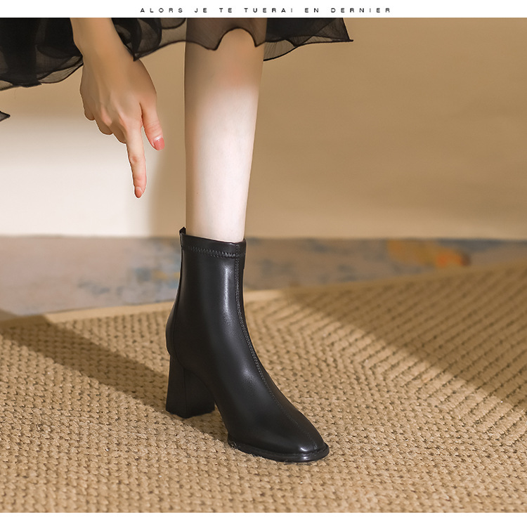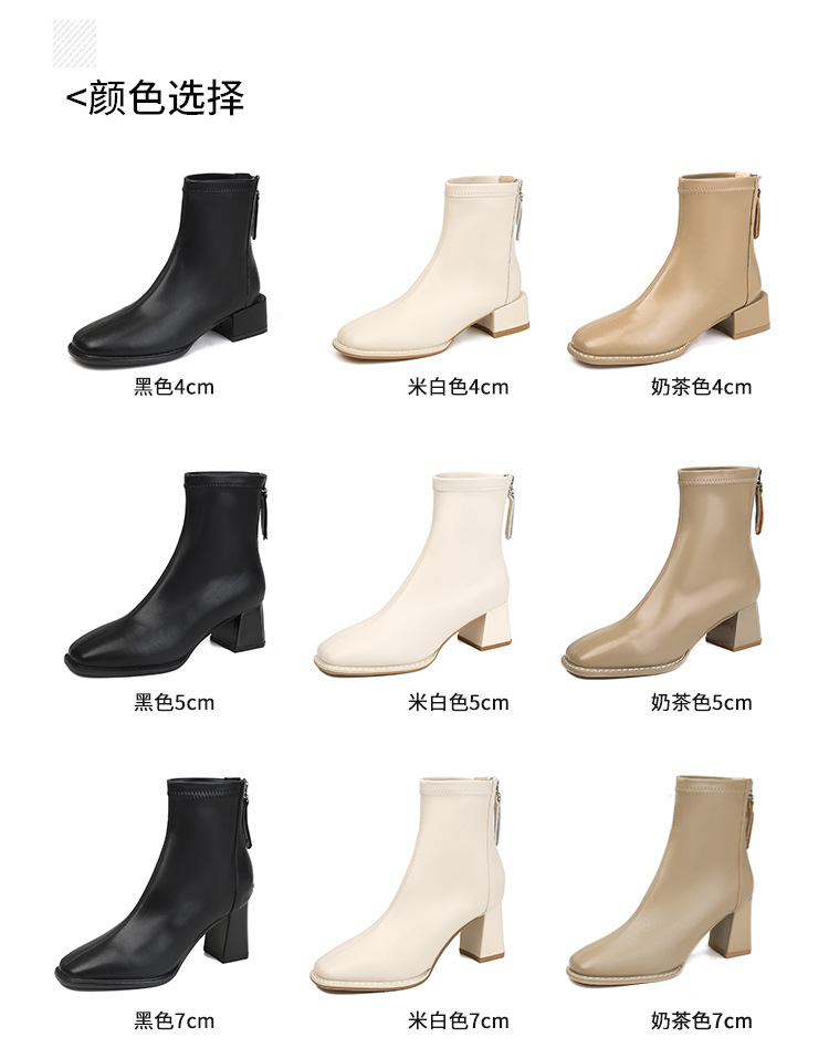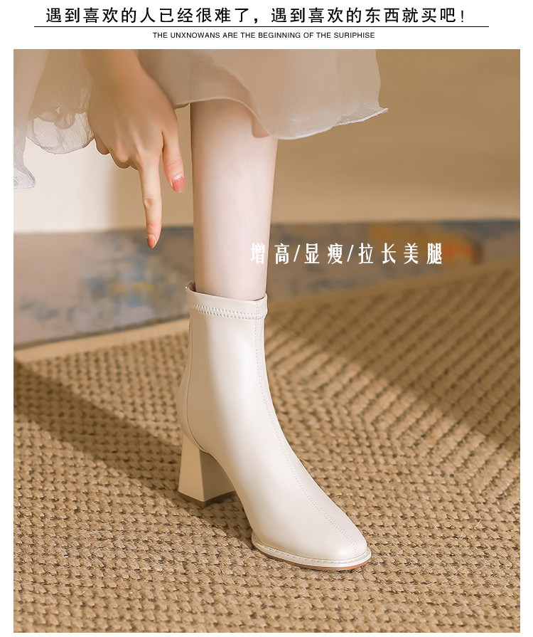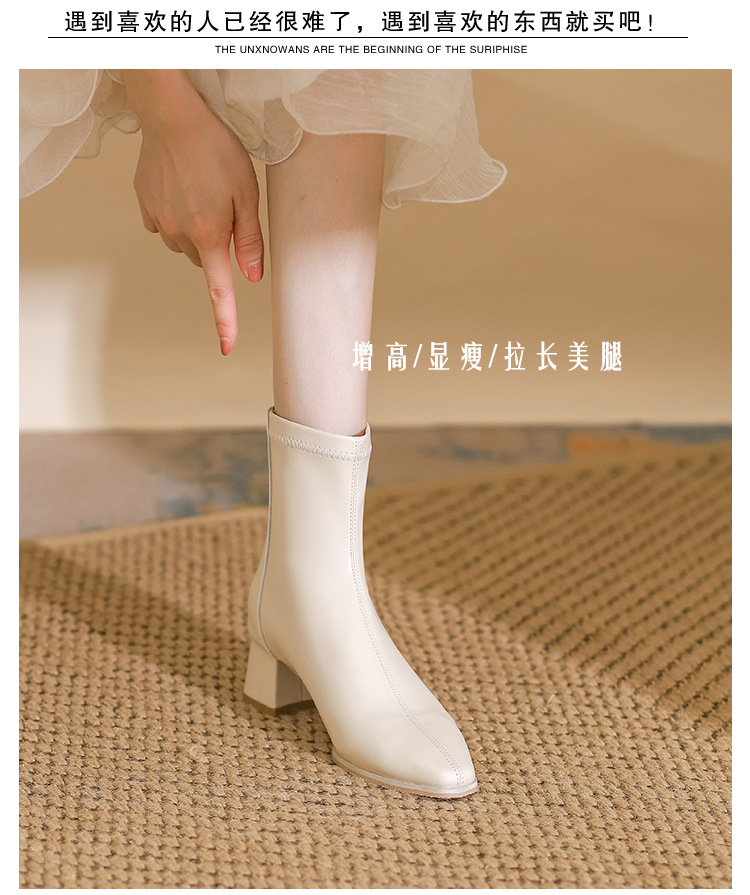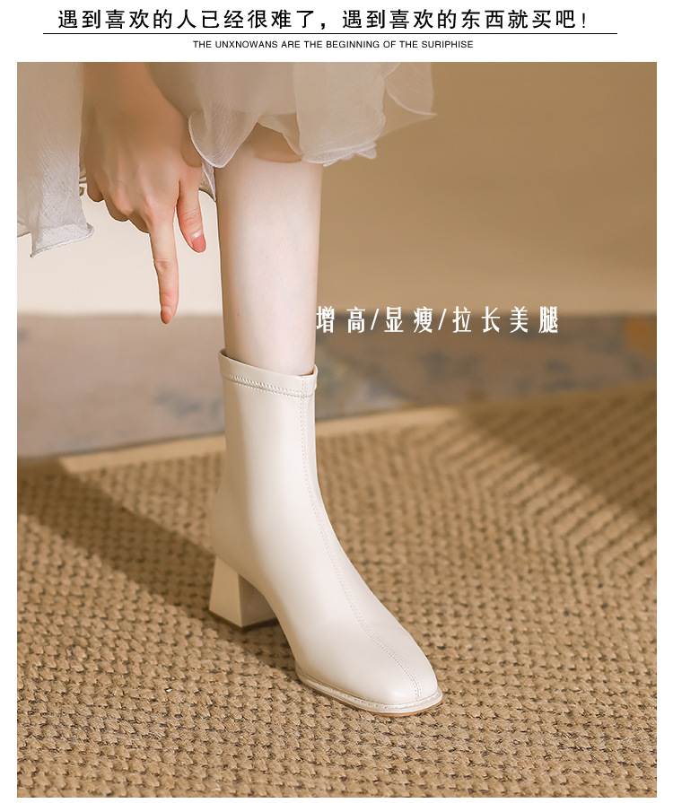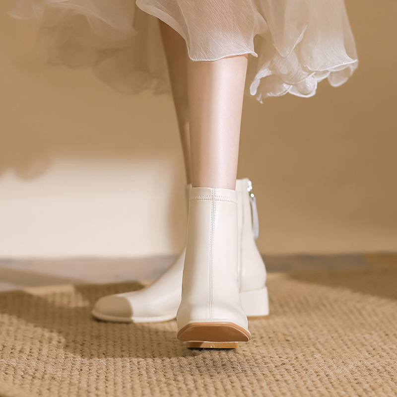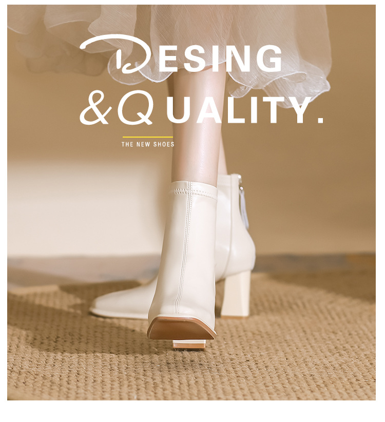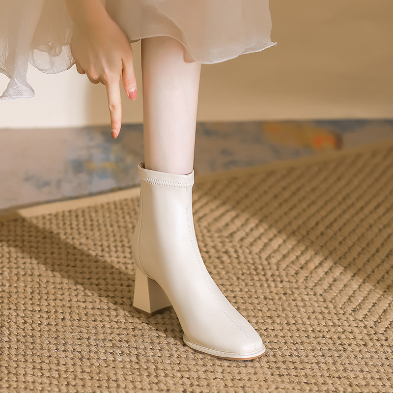 신유다 ~ 정품 가죽 흰색 발목 부츠 여성용 얇은 부츠 작은 하이힐 부츠 봄과 가을 발목 부츠 두꺼운 발 뒤꿈치 사각형 발가락 말스토어 가기