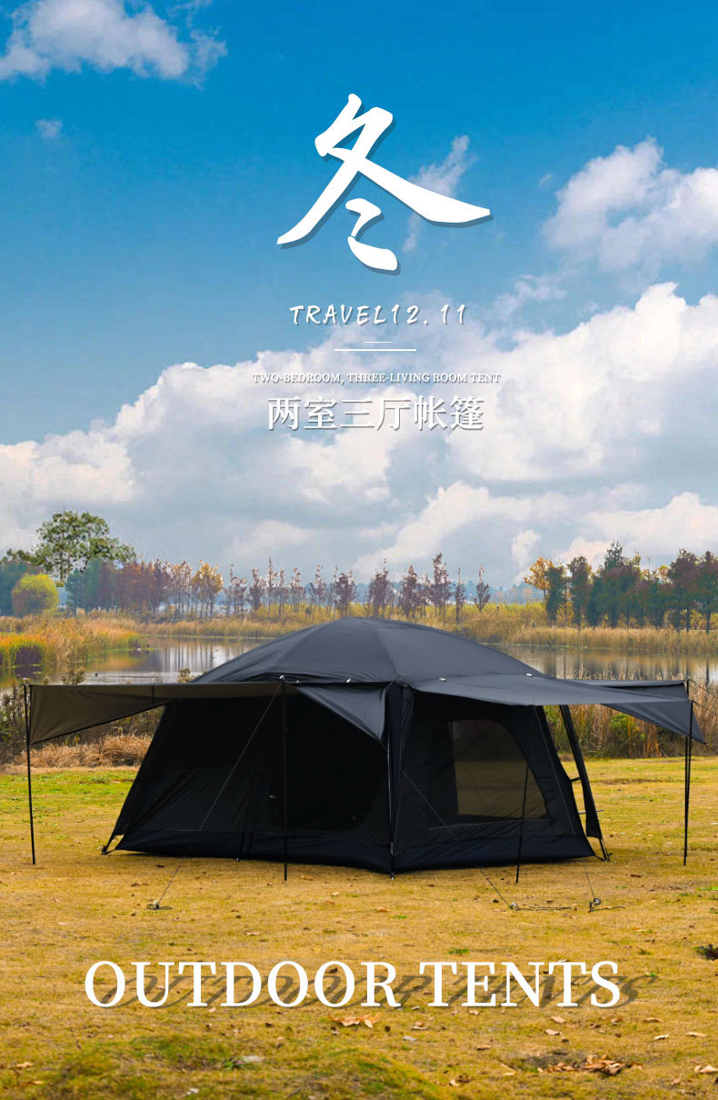 캠핑 반산 지붕 캠핑 피크닉 휴대용 접이식 대형 텐트 2 베드룸 3 도어 거실 야외 텐트