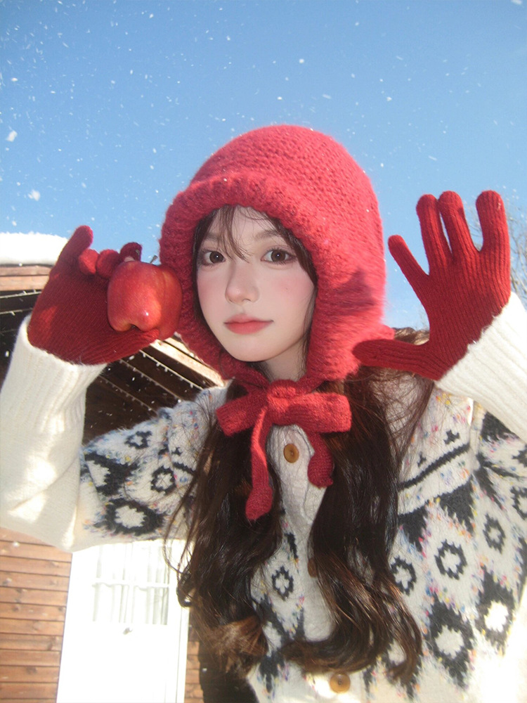 이중 사용 가방 모자 ~ 게으른 느낌 가을과 겨울 따뜻한 올 매치 울 모자 모헤어 레이스 업 니트 풀오버 모자 여성용
