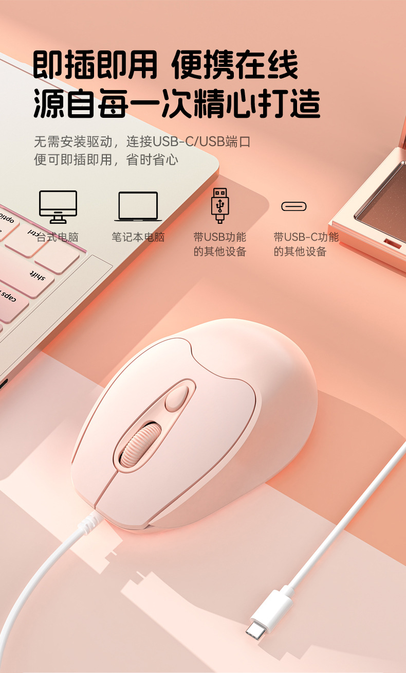 제조업체 새로운 개인 모델 유선 마우스 Typec 인터페이스 음소거 버튼 국경 유선 게임 마우스스토어 가기