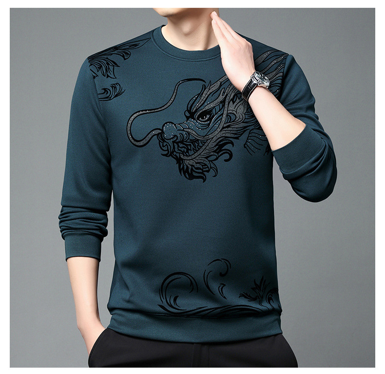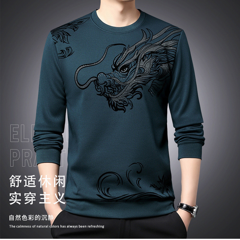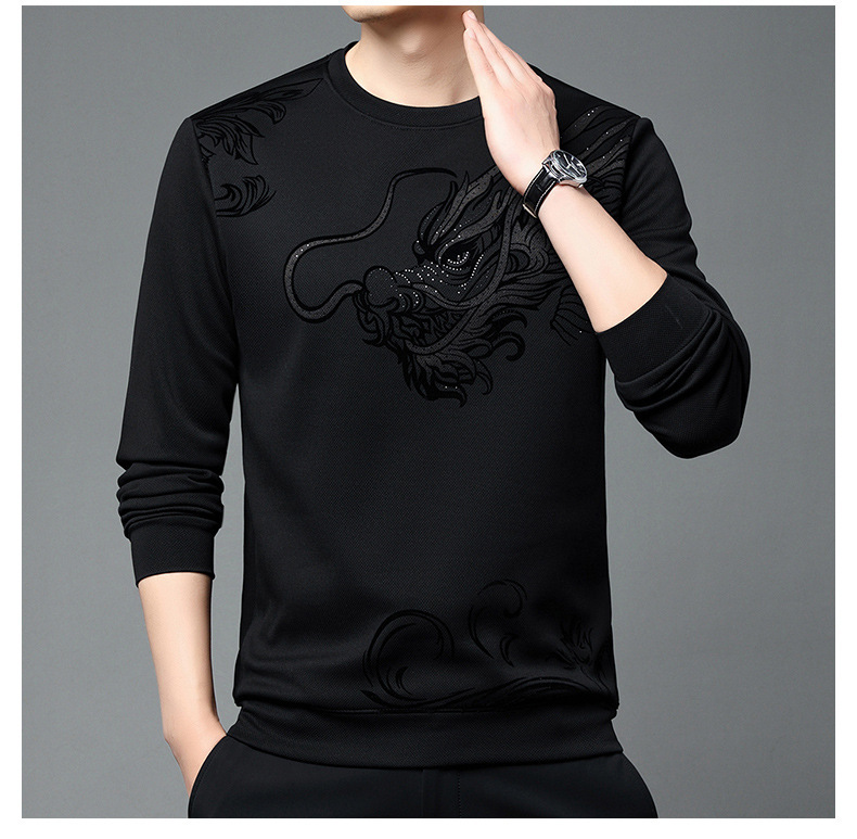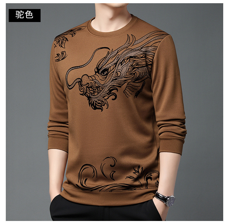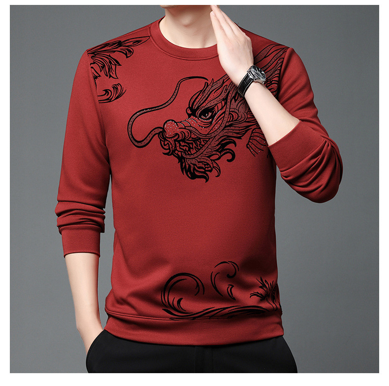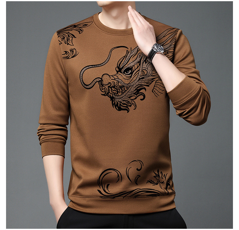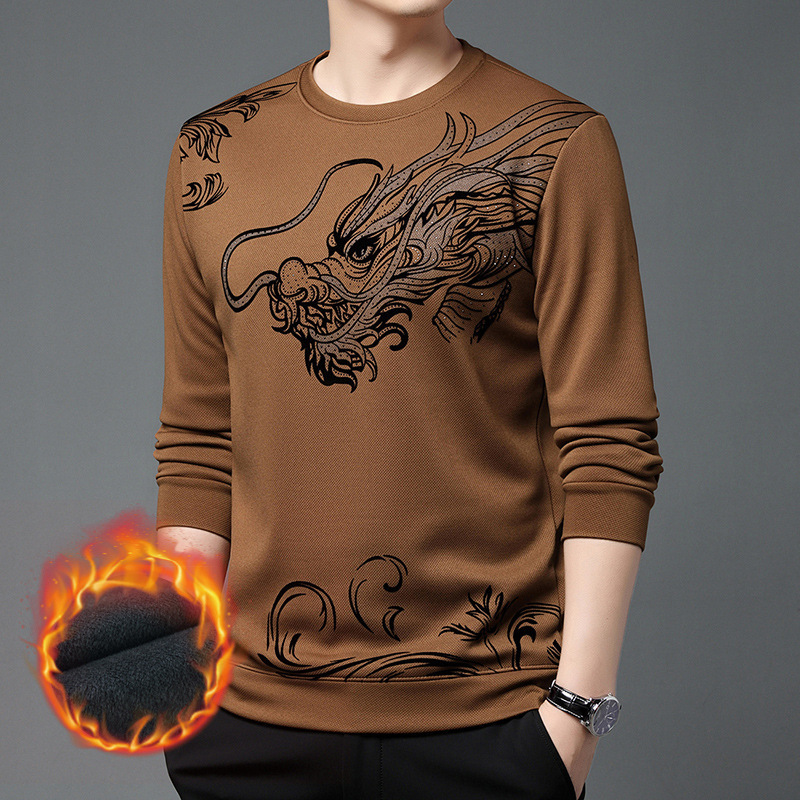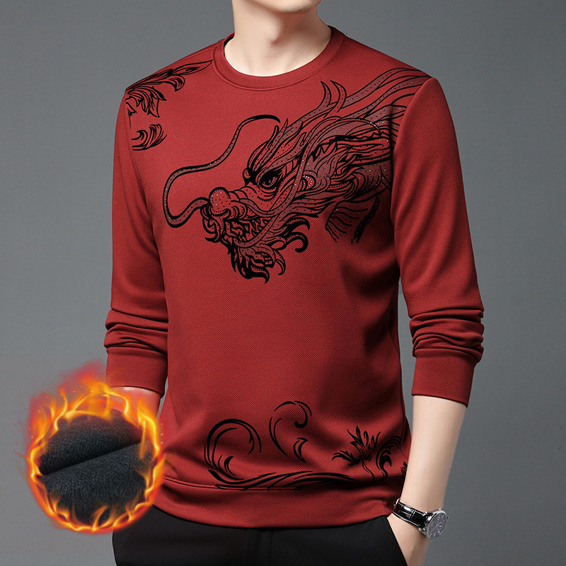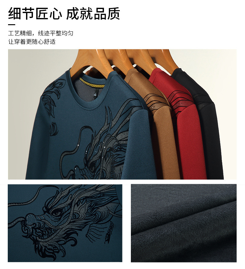 2023冬季新款龙年圆领卫衣男士新款潮流时尚绒厚龙头打底衫男