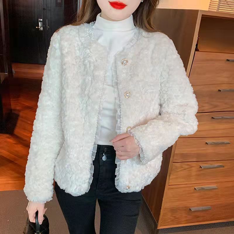 새로운 한국식 고급 레이스 비즈 코트를 2022 가을과 겨울에 여성을위한 양모 샤넬 스타일 코트스토어 가기