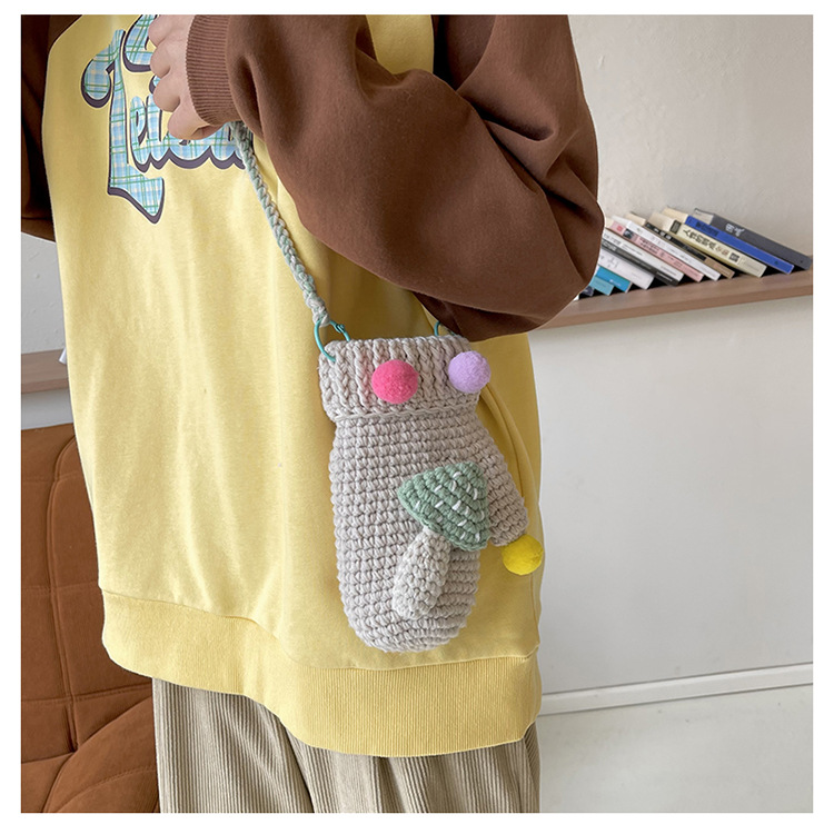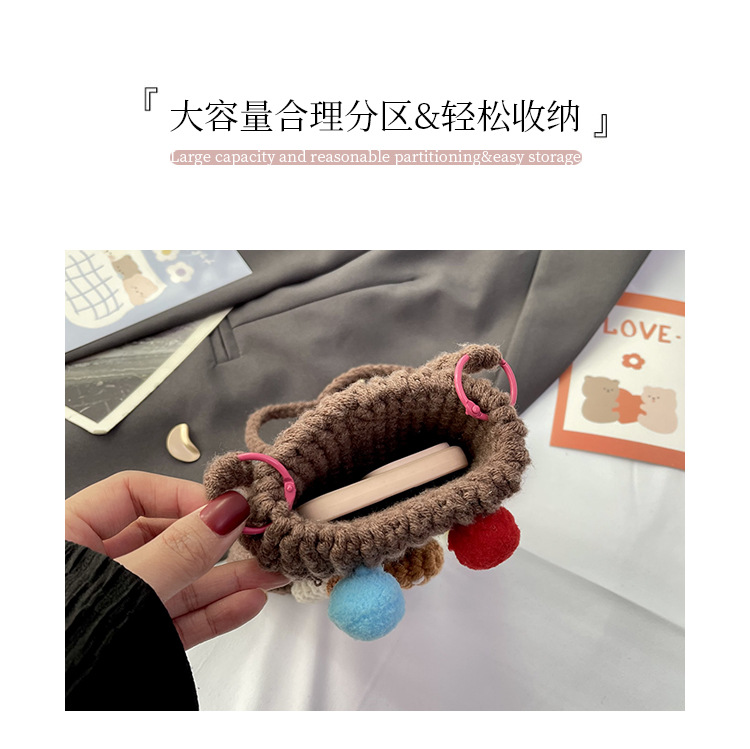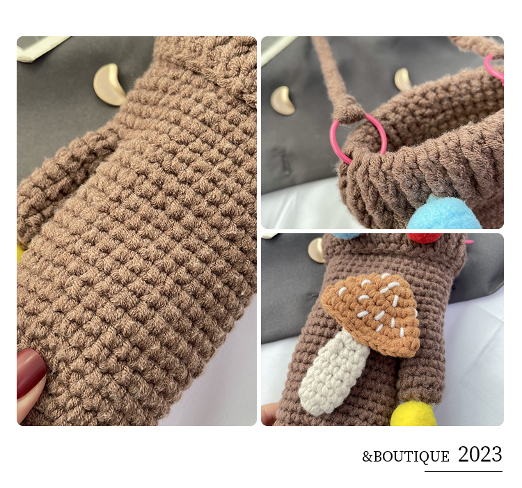 봄과 여름 크로스 바디 귀여운 작은 가방 여성을위한 2023 새로운 수제 모직 니트 숄더백 휴대 전화 가방