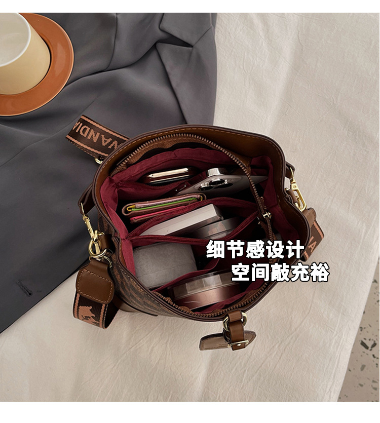 대외 무역 패션 가방 여성의 2023 새로운 하이 엔드 센스 인쇄 어깨 가방 틈새 디자인 버킷 가방 트렌디 한 크로스 바디 백
