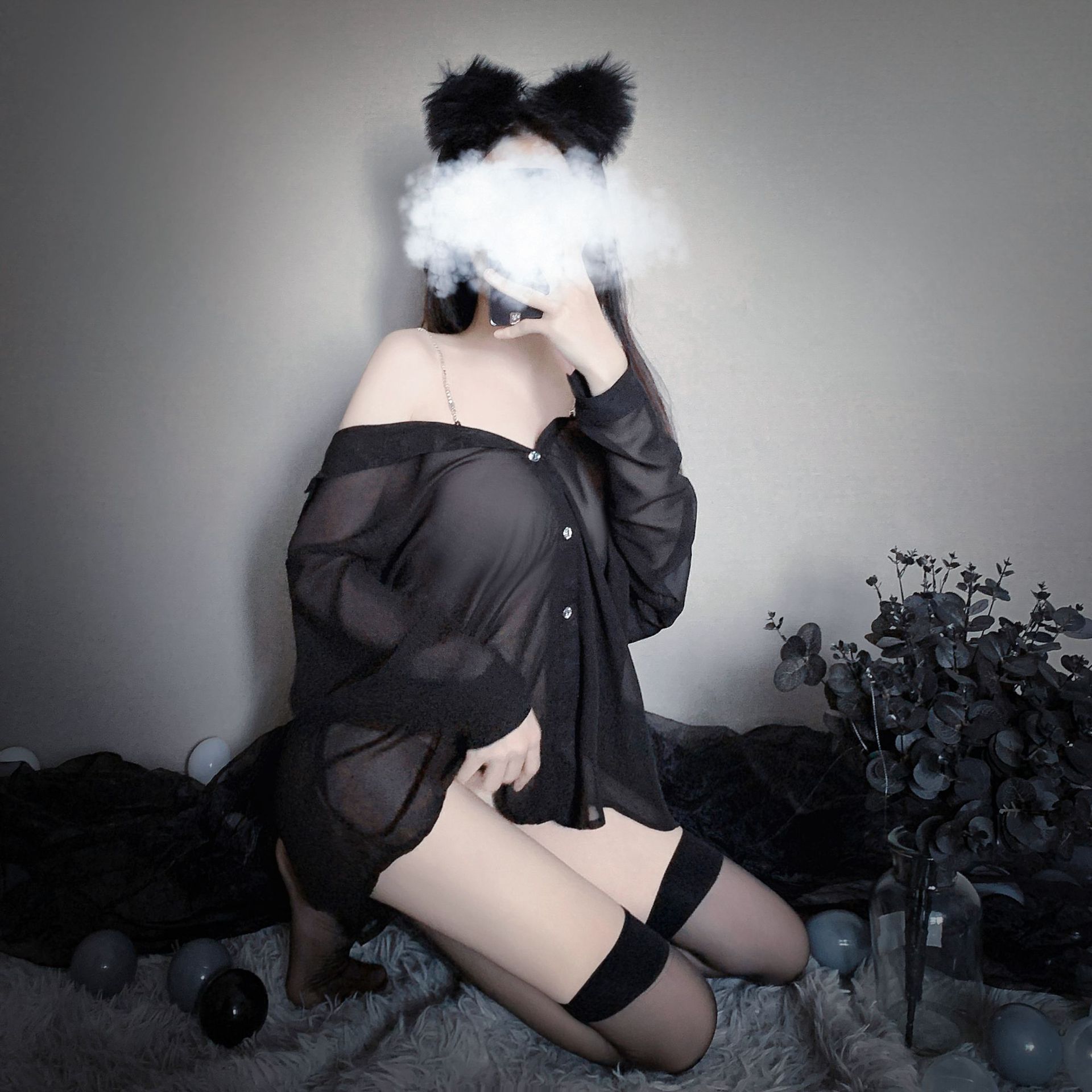• 블랙 모조 다이아몬드 셔츠 + 오픈 스타킹