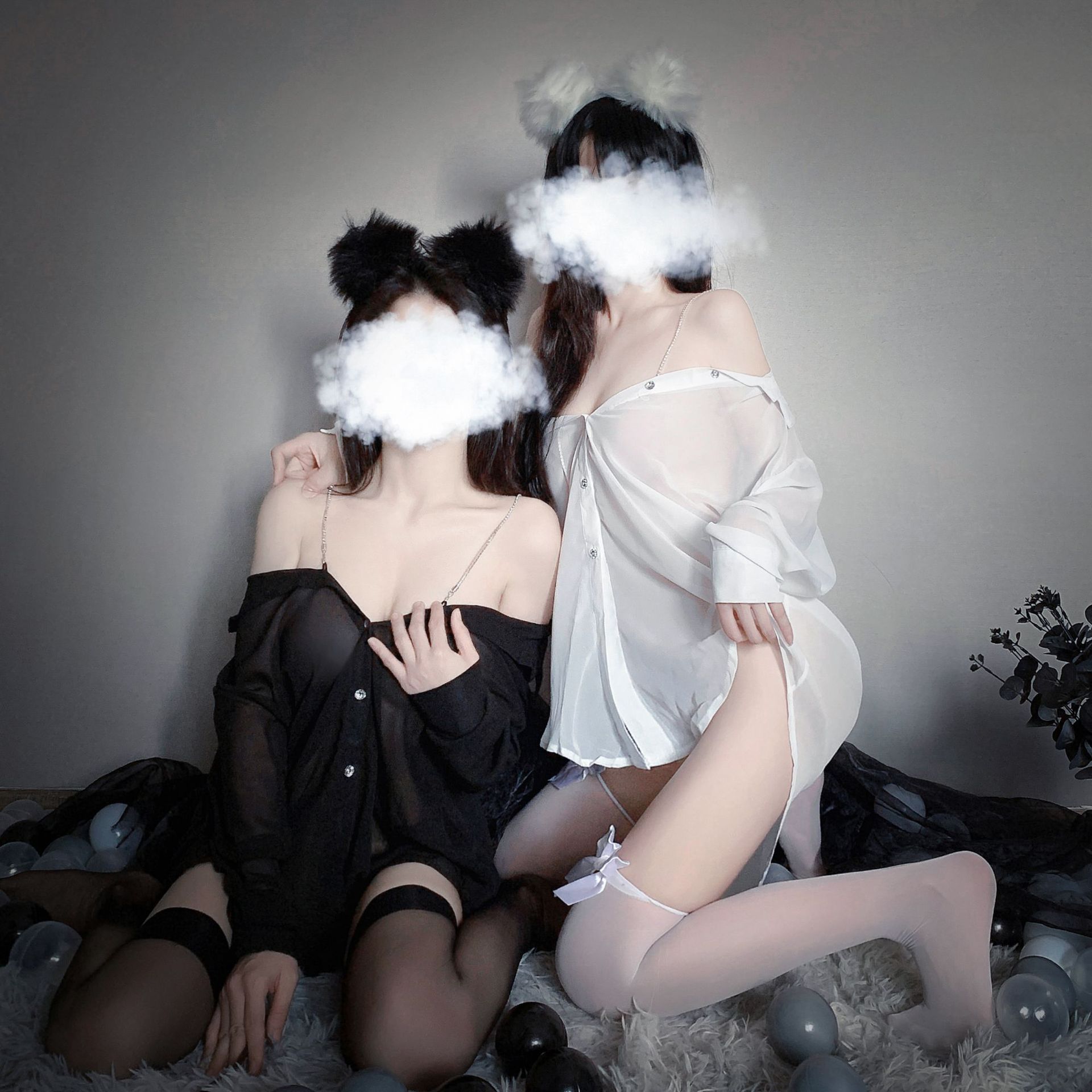 • 흰색 모조 다이아몬드 셔츠 + 오픈 스타킹
