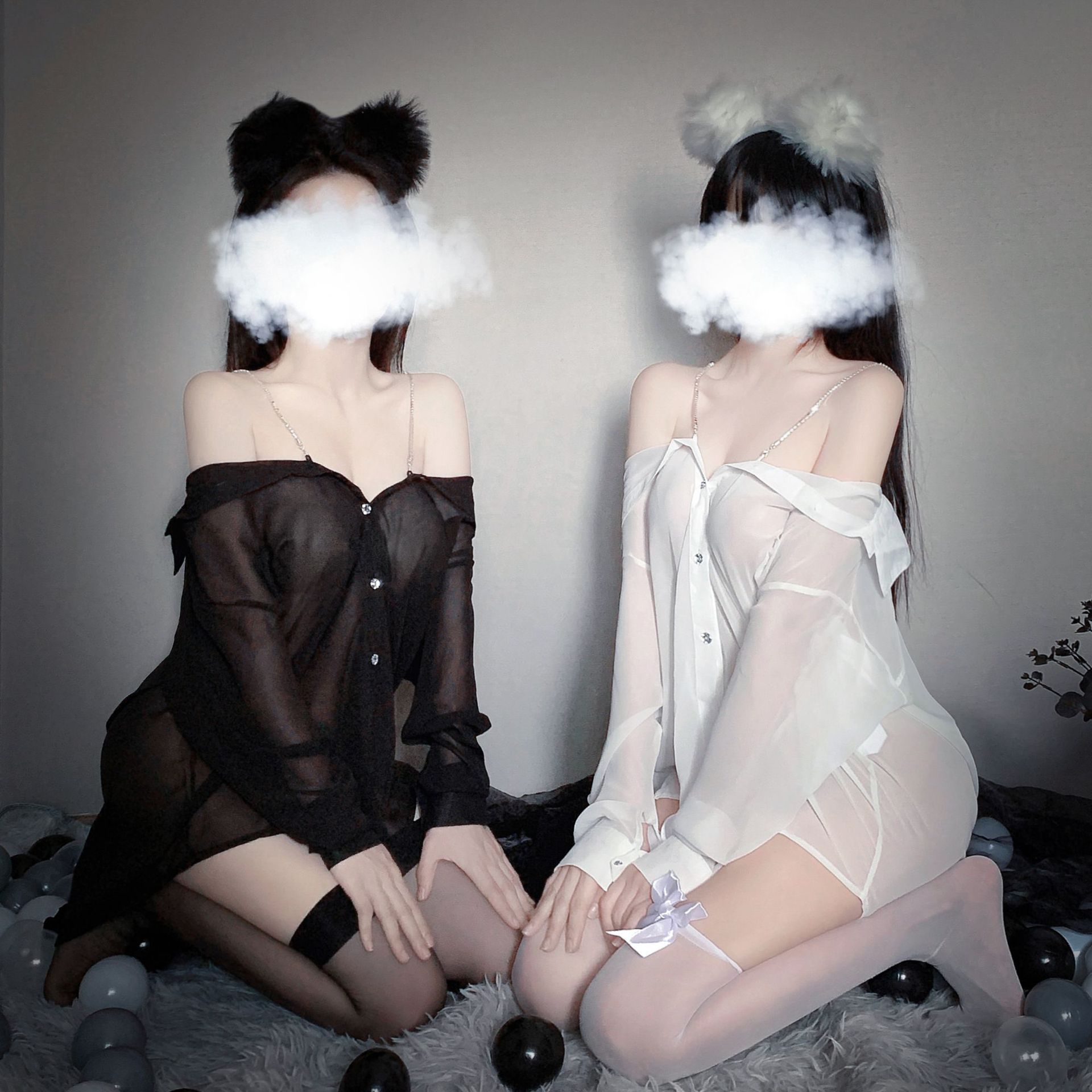 섹시한 섹시한 란제리 여성 쉬폰 슬링 원피스 남자 친구 스타일 흰색 셔츠 오프 숄더 시스루 파자마 유혹 세트스토어 가기
