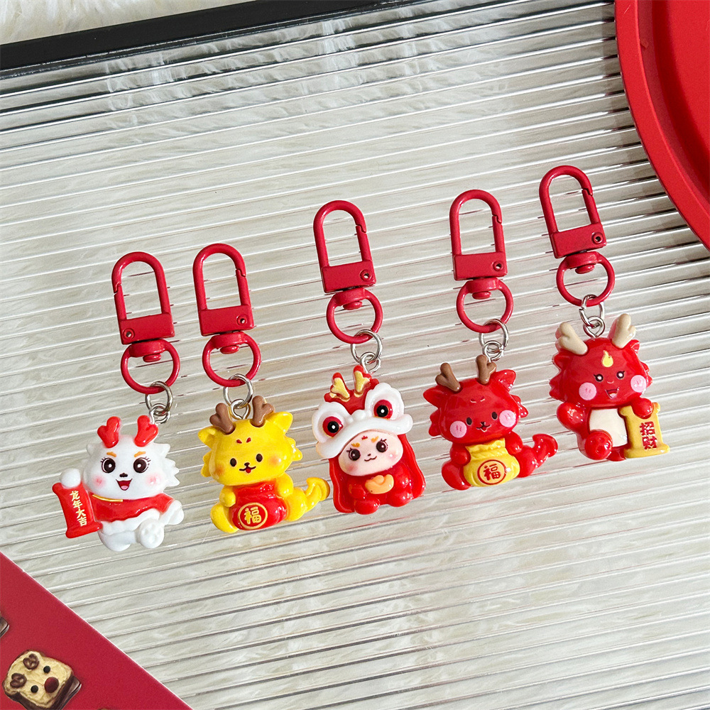 2024 드래곤 년 새 봄 축제 사자 댄스 키 체인 축제 초등학교 학생 학교 가방 용 펜던트 선물 어린이 버클스토어 가기