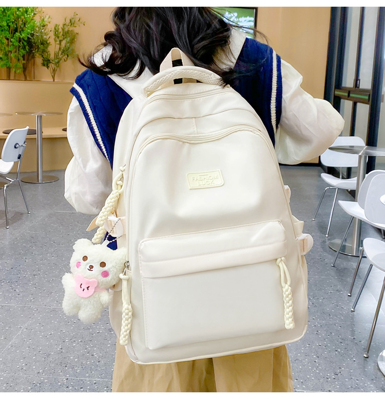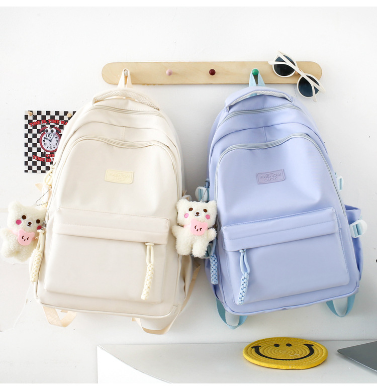 Schoolbag 여성 중학교 학생 일본식 단색 대용량 고등학교 배낭 대학생 다재다능한 간단한 나들이 배낭