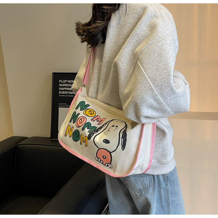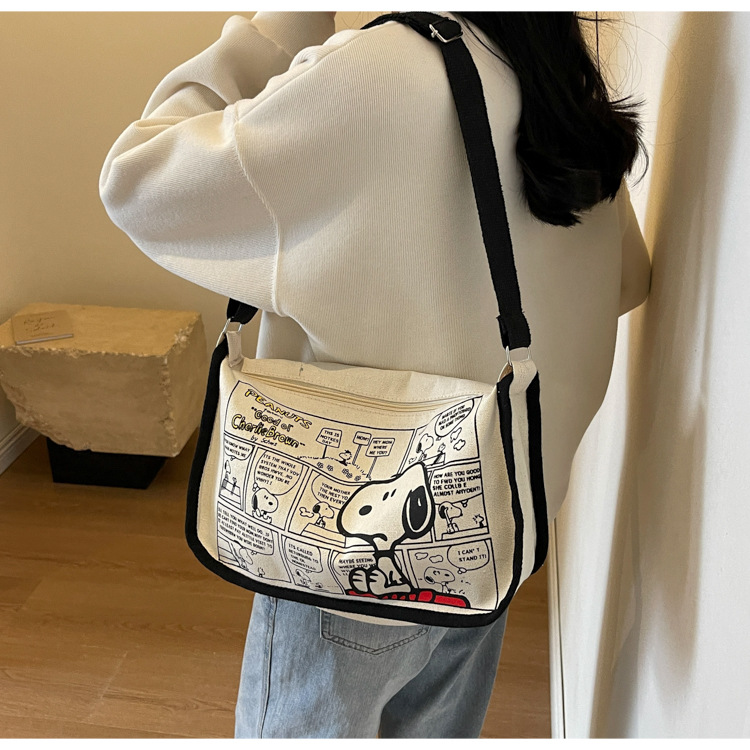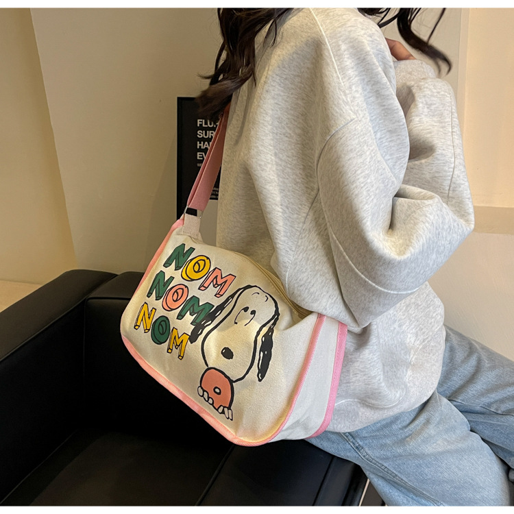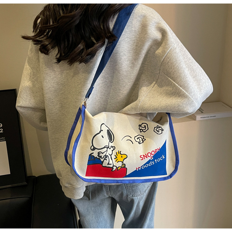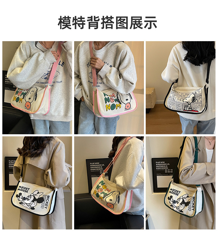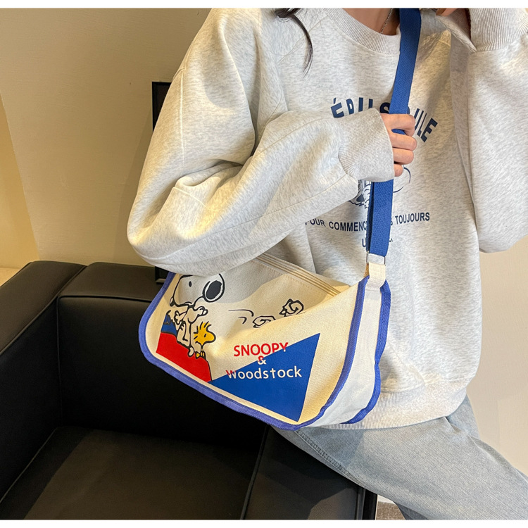 클래스 크로스 바디 만두 백 인스 타 그램 스타일 올 매치 일본식 만화 캔버스 가방 여성을위한 대용량 싱글 어깨 안장 가방스토어 가기