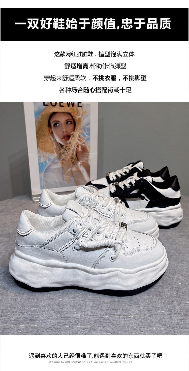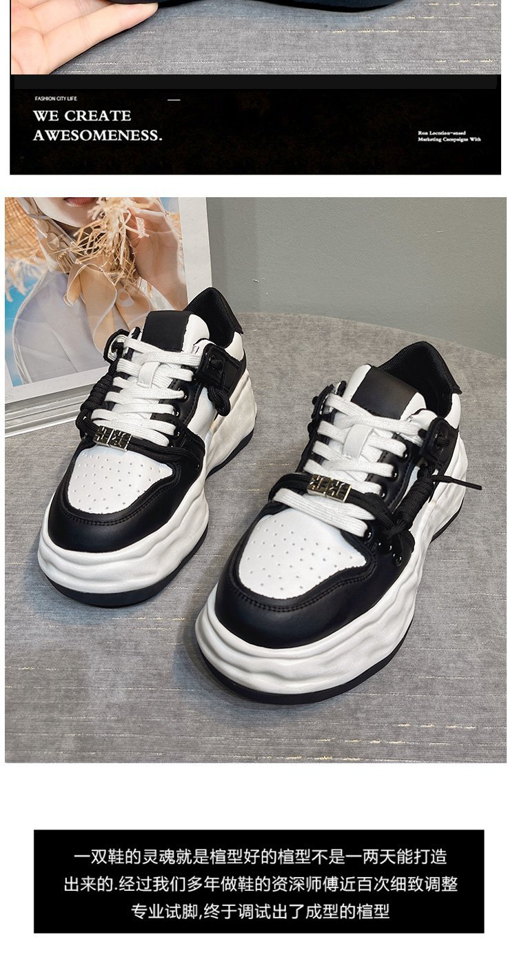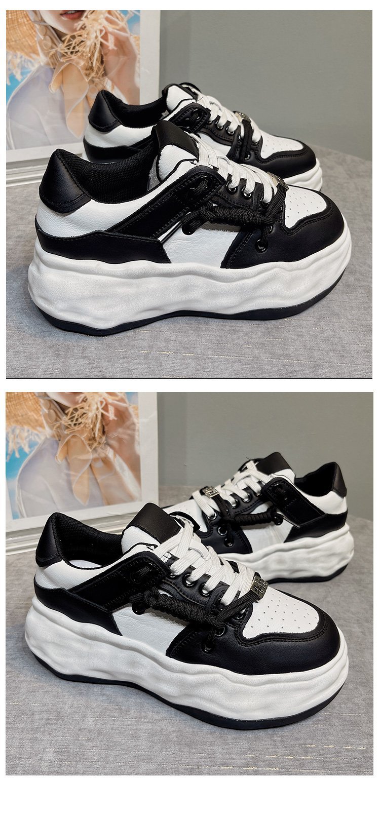 흑백 팬더 여성 신발 2024 새로운 흰색 신발 높이 증가 캐주얼 보드 신발 틈새 다목적 인기 두꺼운 밑창 용해 신발