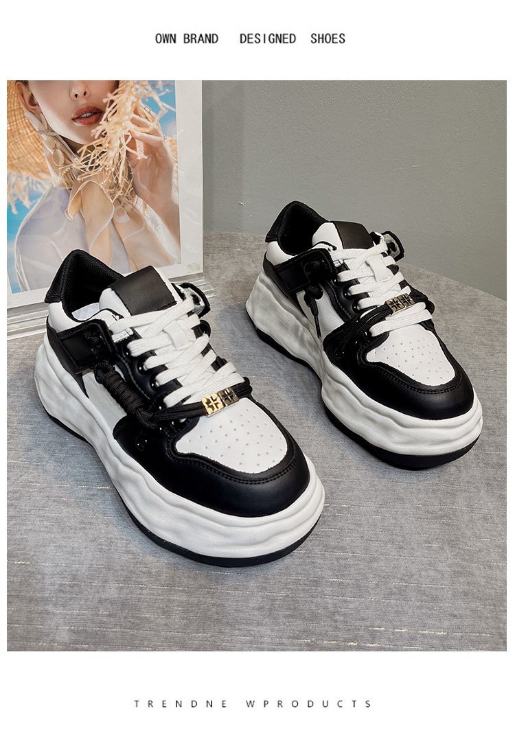 흑백 팬더 여성 신발 2024 새로운 흰색 신발 높이 증가 캐주얼 보드 신발 틈새 다목적 인기 두꺼운 밑창 용해 신발스토어 가기