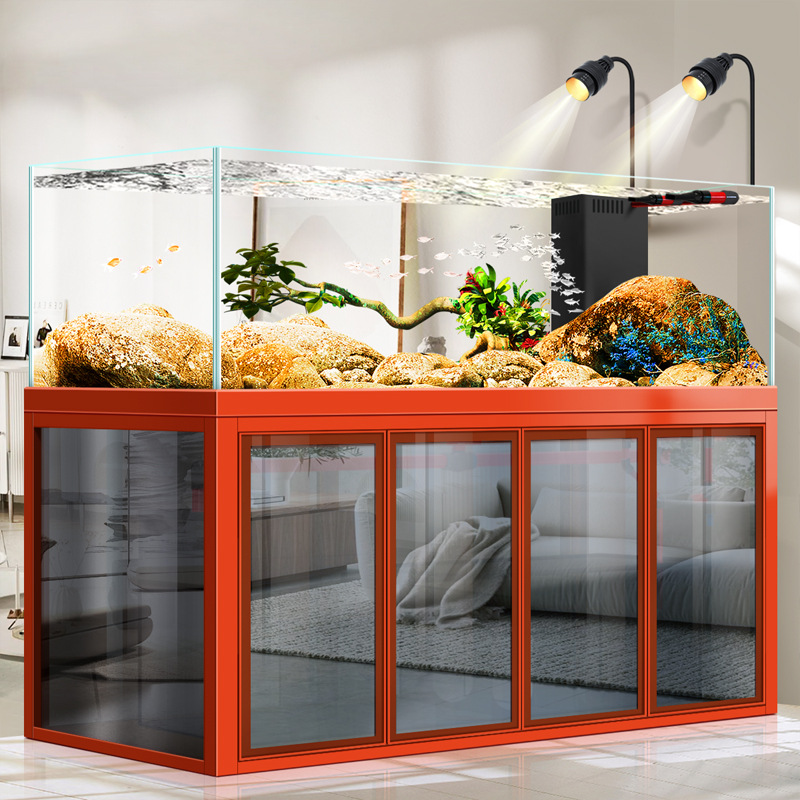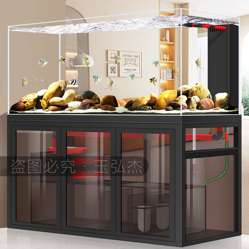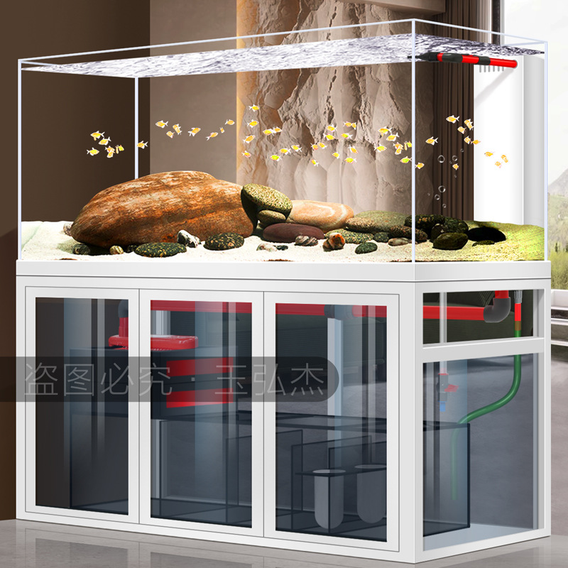 하천 탱크 어항 거실 바닥 필터 물없는 생태 경관 물 탱크 중소 수족관 울트라 화이트 유리스토어 가기