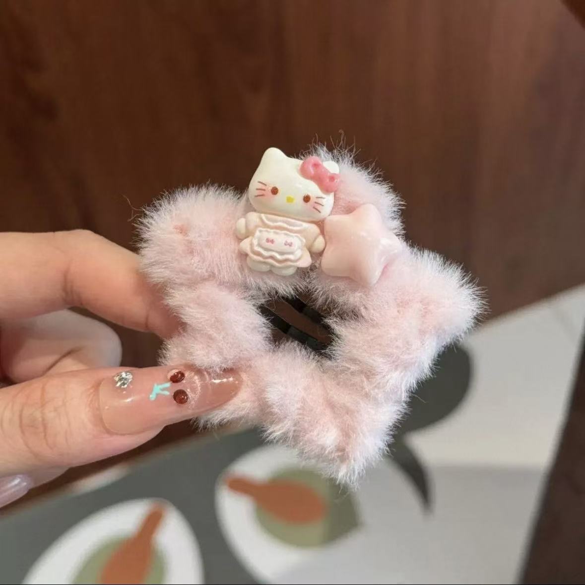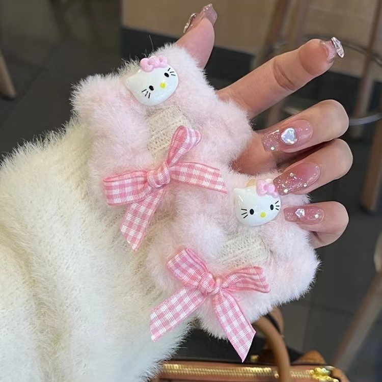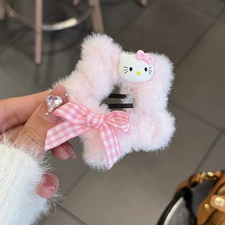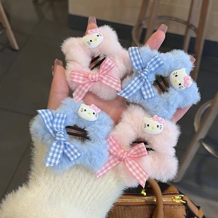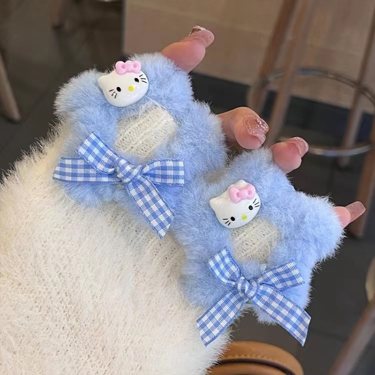 가을과 겨울 모피 소녀 BB 클립 스타 kt 고양이 체크 무늬 활 머리핀 달콤한 다섯개 별 만화 헤어 액세서리스토어 가기