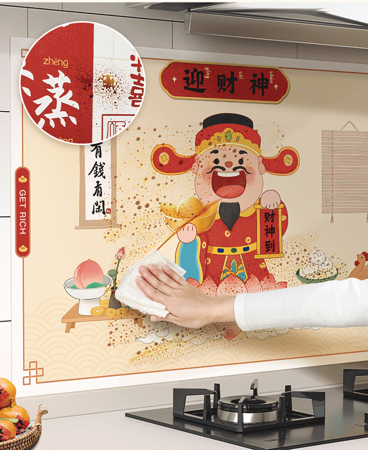 부엌 신 부엌 기름 방지 스티커 새해 장식 슈퍼 두꺼운 방수 내화 고온 스토브 벽 스티커 벽지 자체 접착스토어 가기