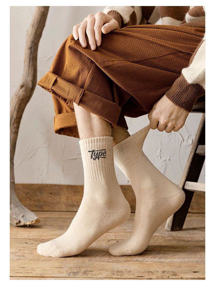 가을과 겨울 새로운 중간 튜브 양말 여성 탈취제 땀 흡수성 문자 스포츠 비 필링 유행 양말 커플 남성스토어 가기