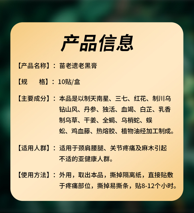 Guizhou Miao 연고 어깨 패치 요추 패치 통증 패치 발열 패치 발 뒤꿈치 통증 패치 뼈 침투 패치 올드 블랙 석고스토어 가기
