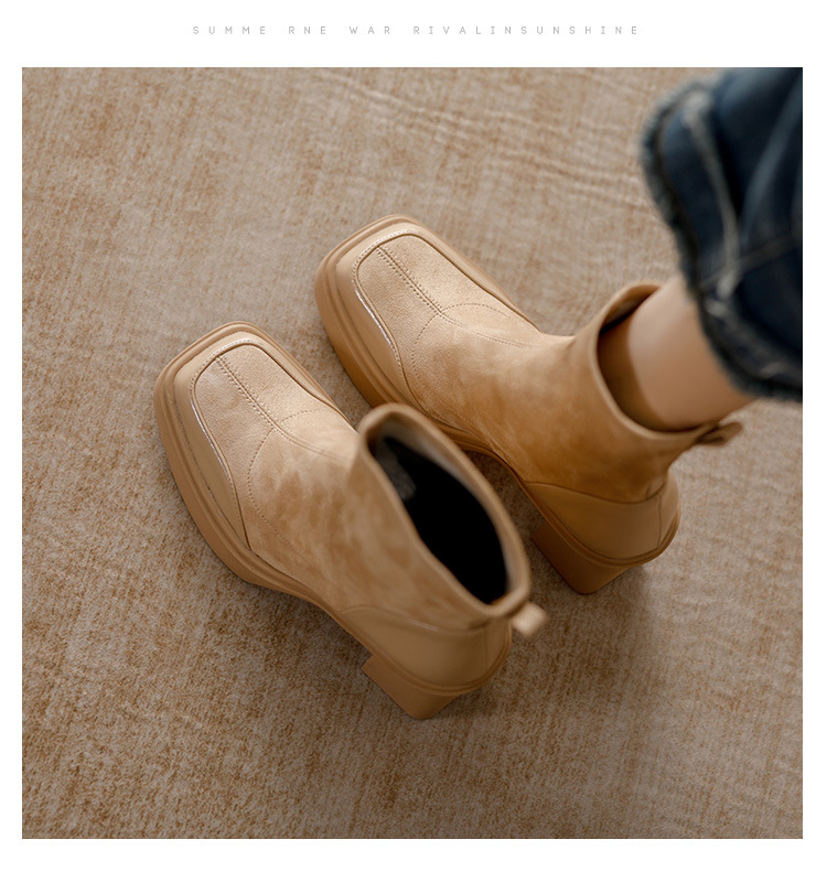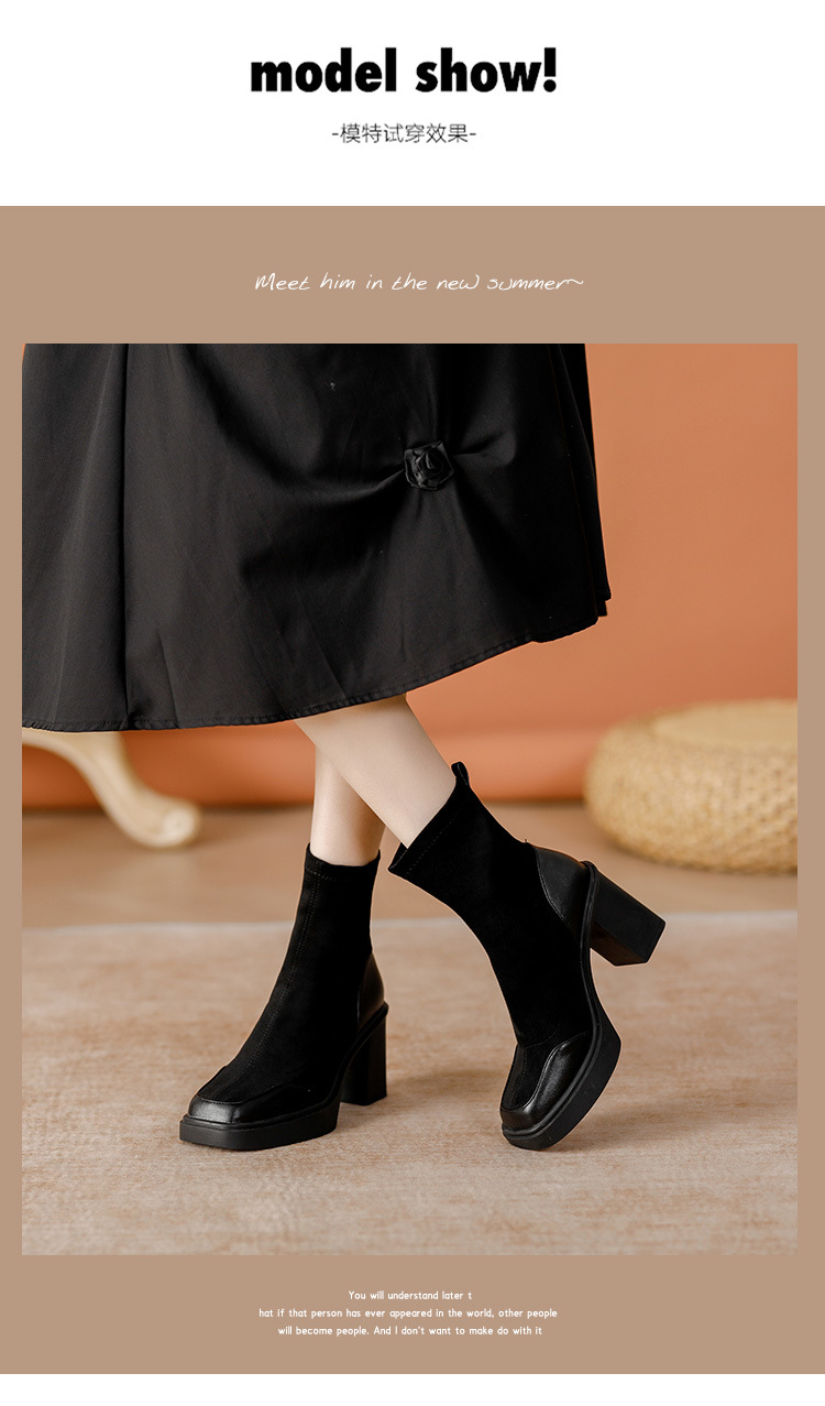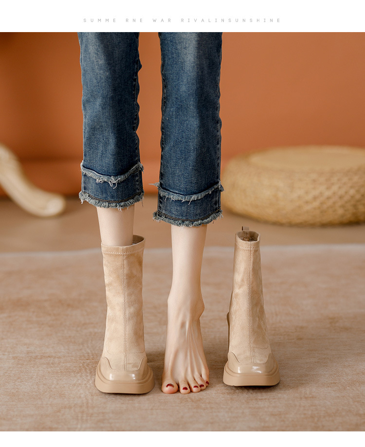 여성용 숏부츠 2024 가을 겨울 신상 통기성 좋고 다용도로 활용 가능한 슬림 부츠 굵은 굽으로 날씬해 보이는 신축성 있는 부츠 고급스러운 스웨이드 소재