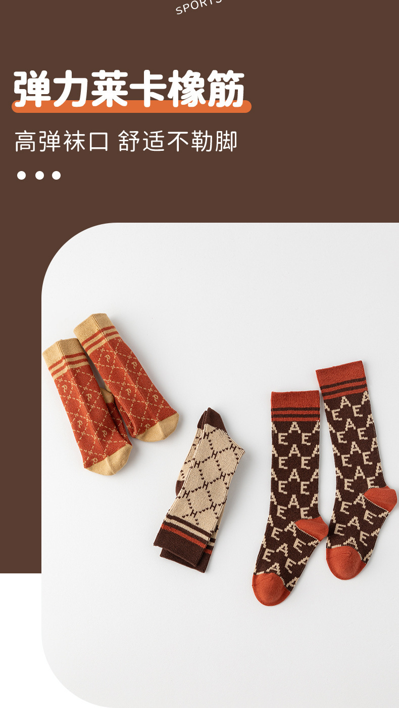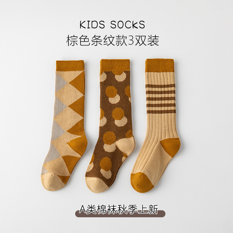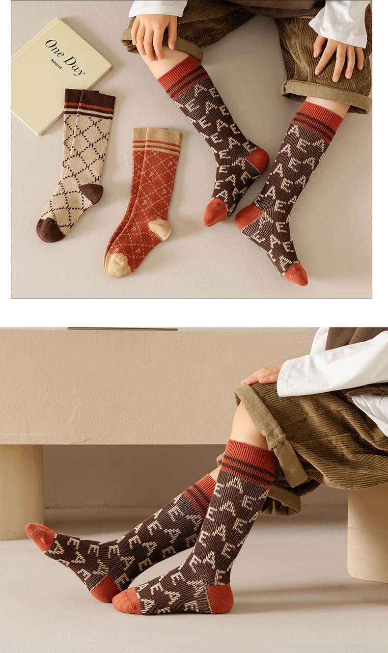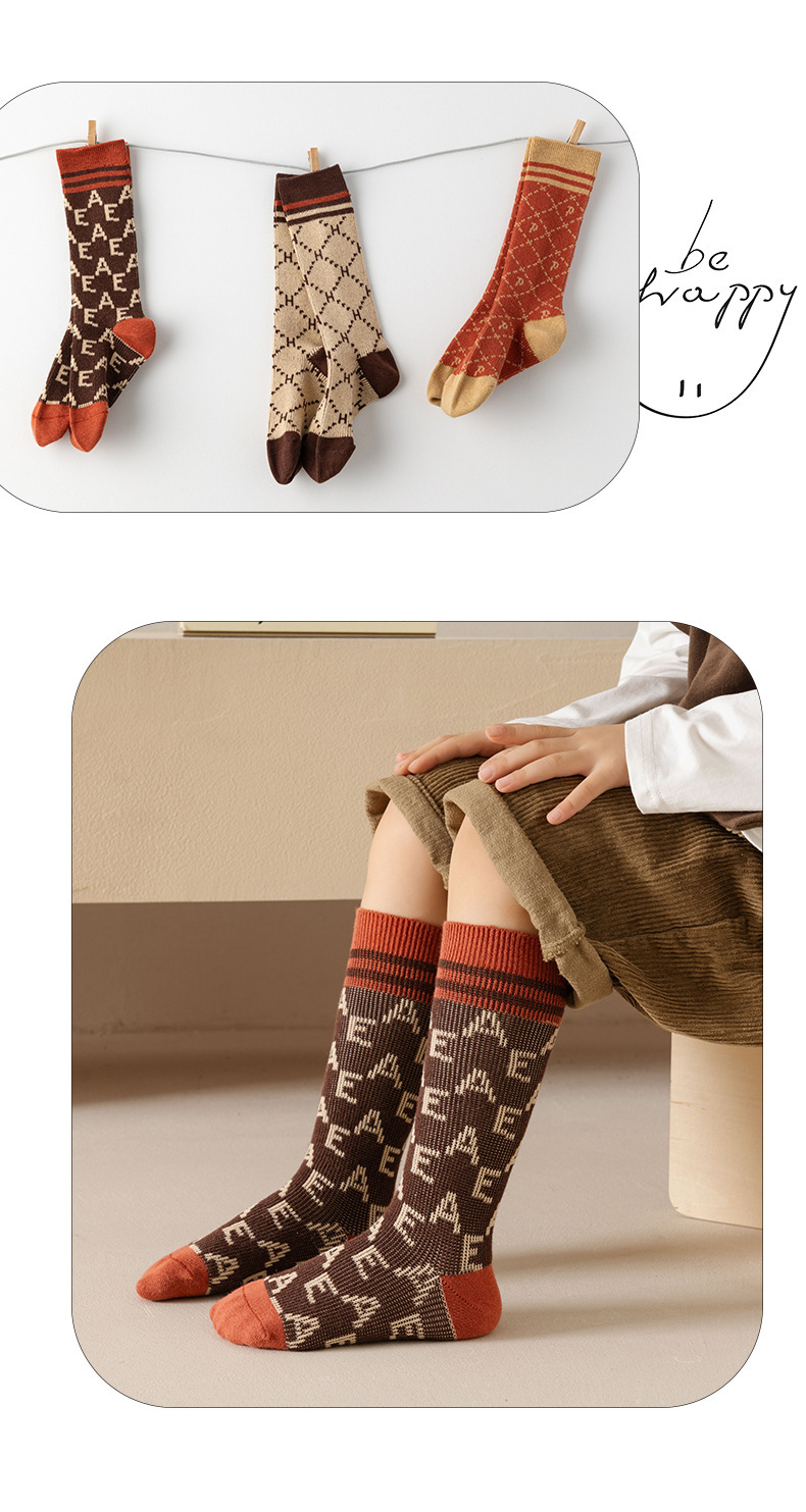이중 바늘 이중 라인 겨울용 두꺼운 아동 양말, 겨울용 초등학생 유아용 체크무늬 알파벳 패션 롱 양말스토어 가기