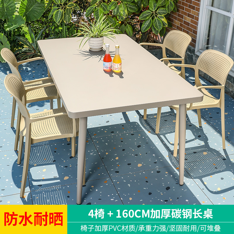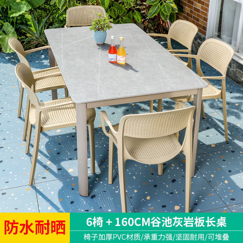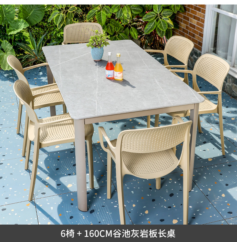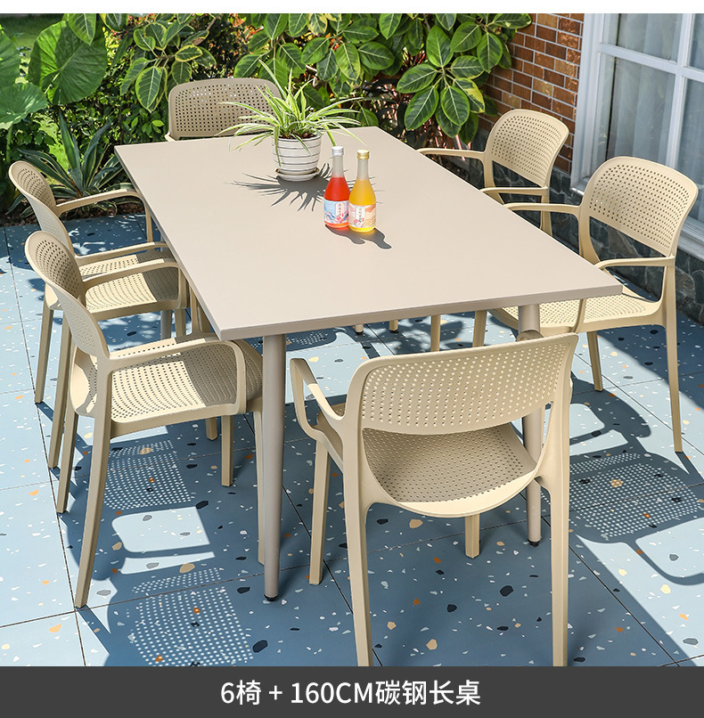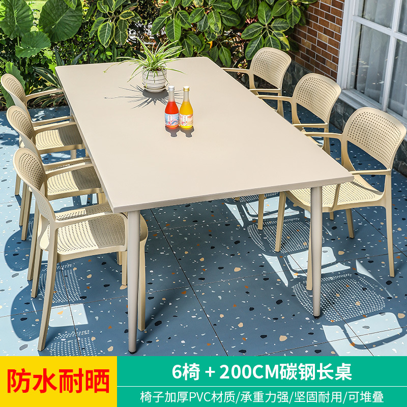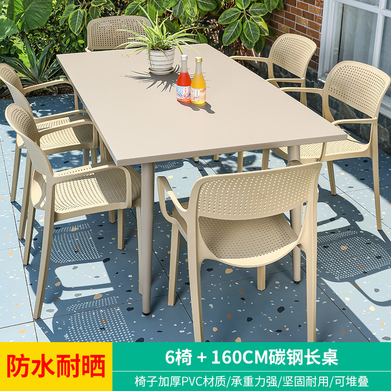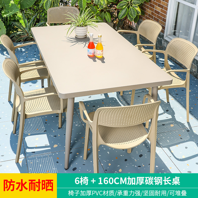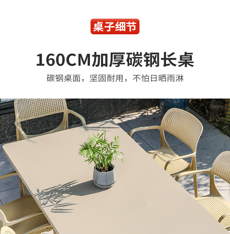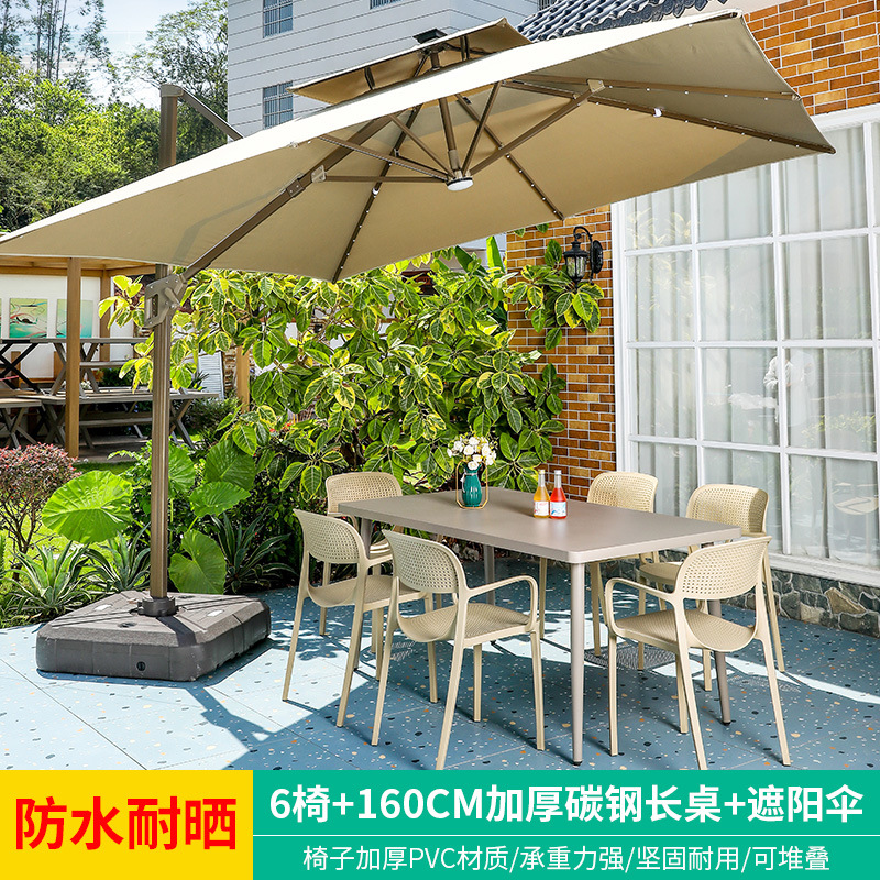 • 의자 6개 + 160CM 두께의 탄소강 긴 테이블 + 파라솔