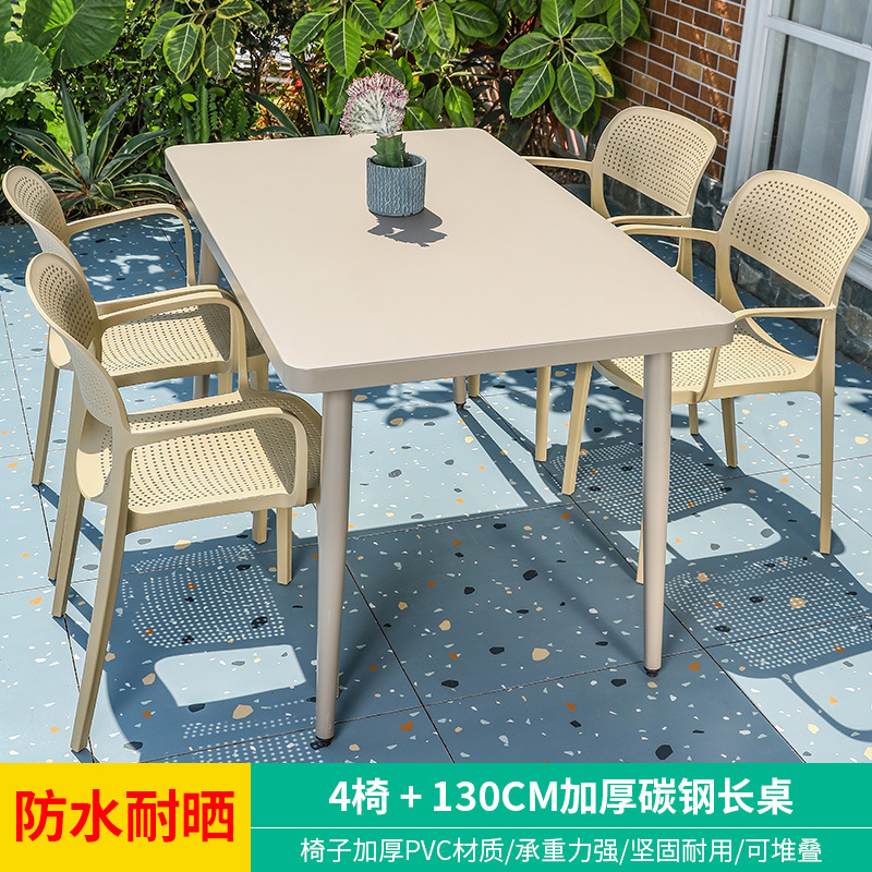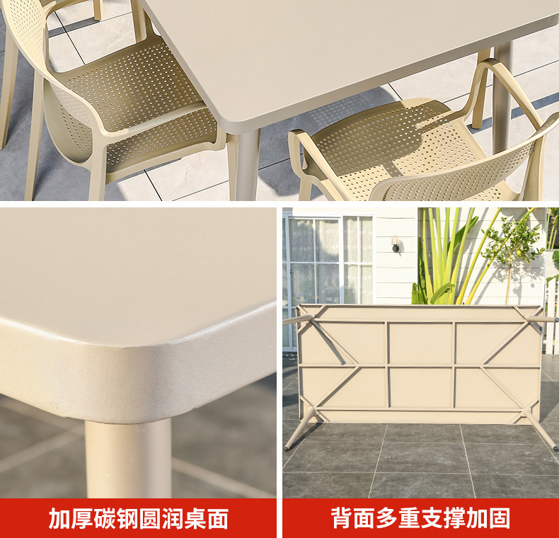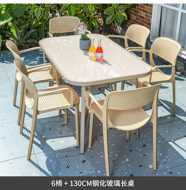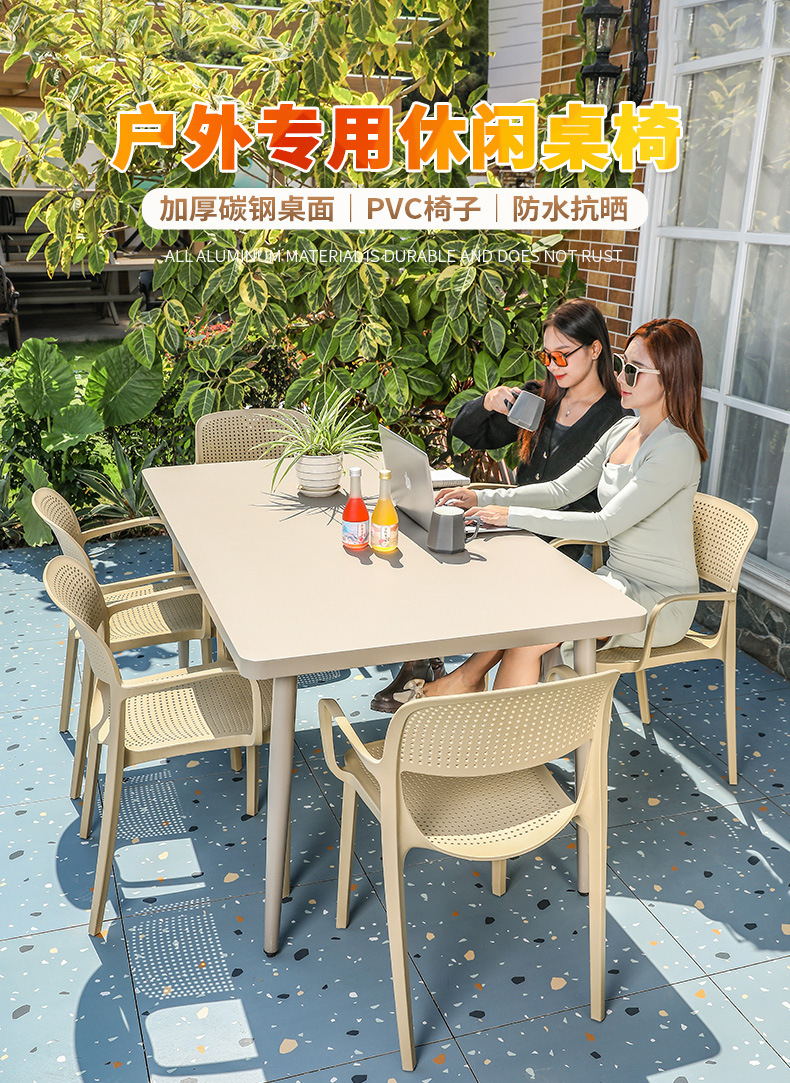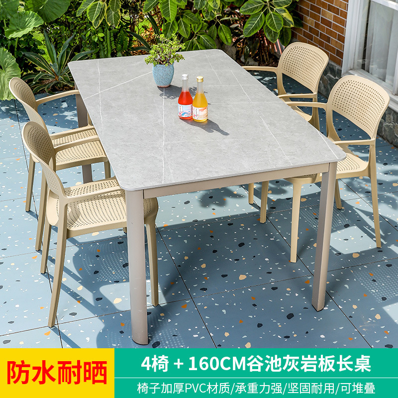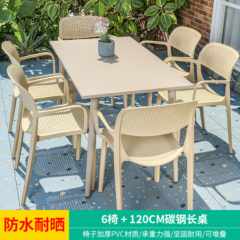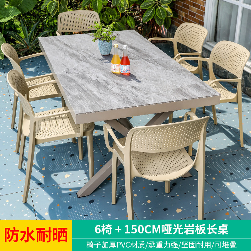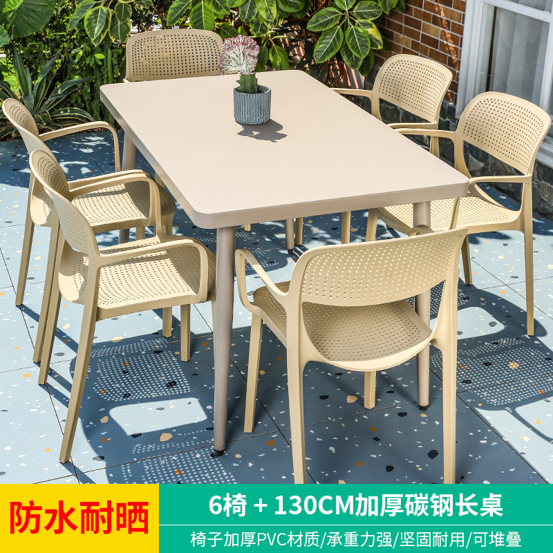 • 의자 6개 + 160CM 두께의 탄소강 긴 테이블 + 파라솔