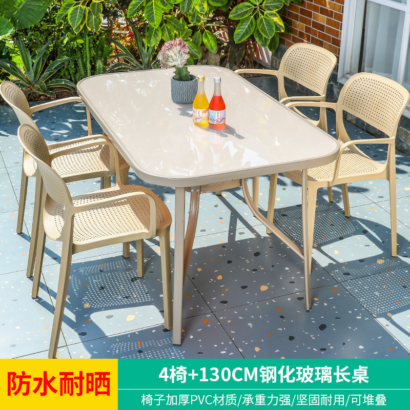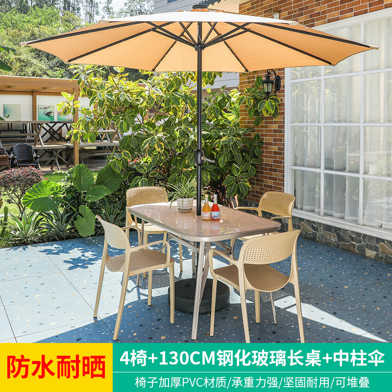• 4 의자 130CM 강화 유리 긴 테이블 중간 기둥 우산