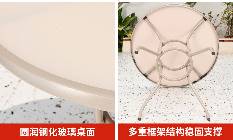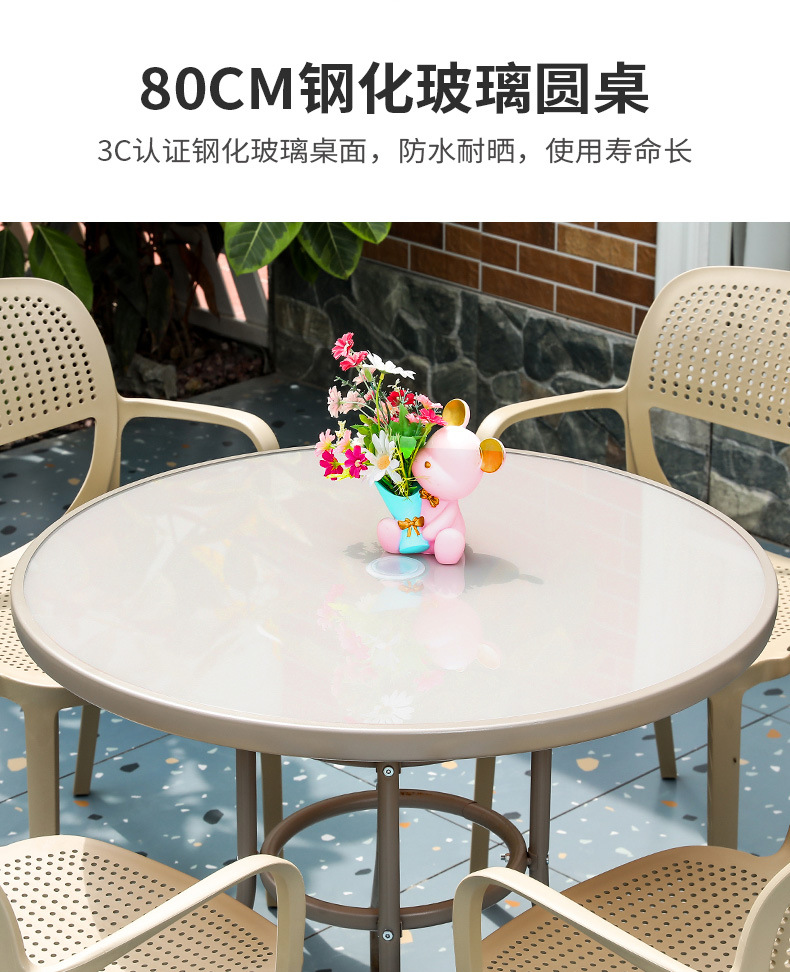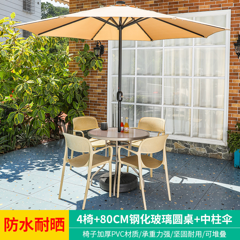 • 4 의자 80CM 강화 유리 라운드 테이블 중간 기둥 우산