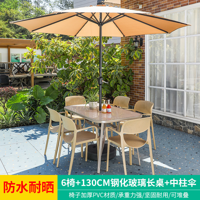 • 6 의자 130CM 강화 유리 긴 테이블 중간 기둥 우산