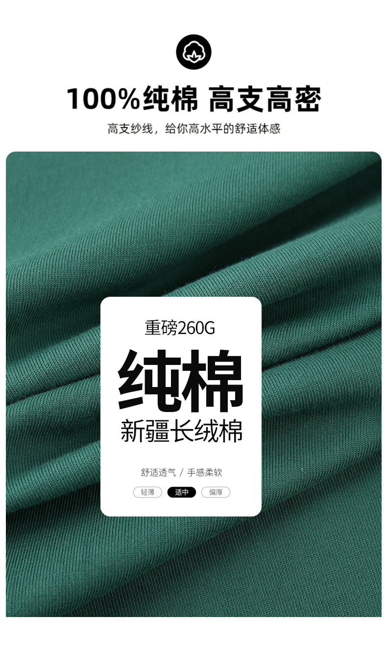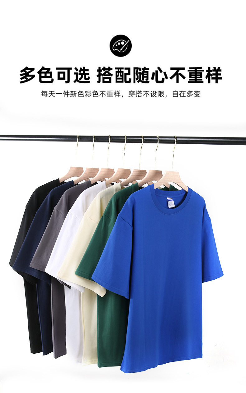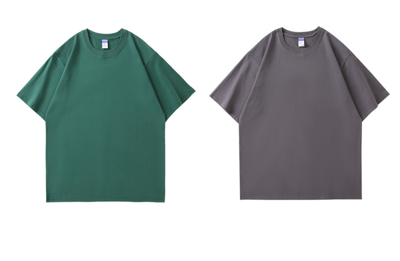 260g 빗질면 헤비 반소매 남성용 드롭 숄더 티셔츠 청소년 단색 바닥 셔츠 반소매스토어 가기
