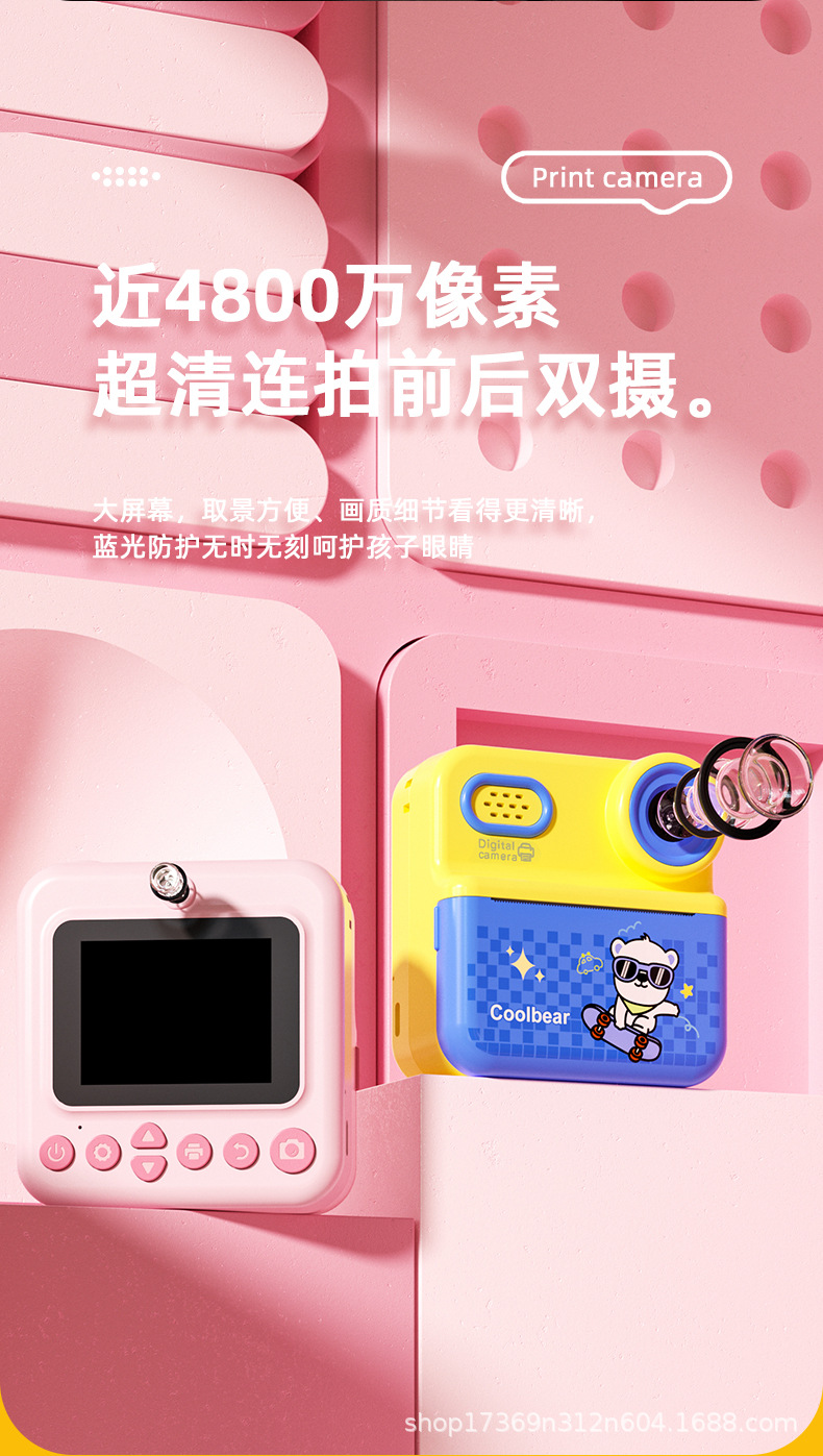 국경을 넘는 신형 어린이 카메라 제조업체 사진 촬영용 SLR 듀얼 렌즈 컬러 인쇄 미니 장난감 즉석 카메라