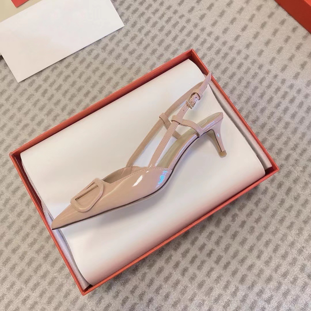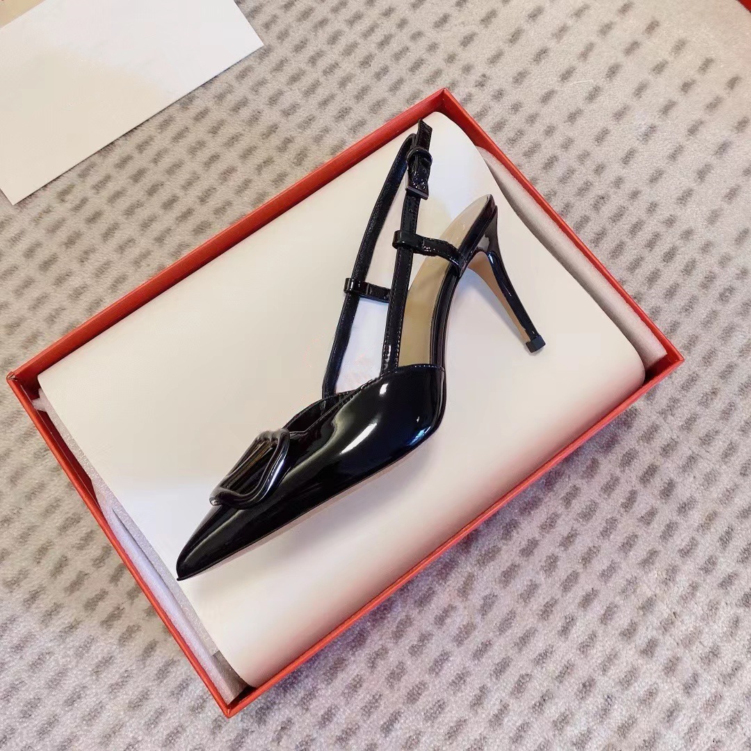하이 버전 V 홈 누드 특허 가죽 하이힐 여성용 발가락 프렌치 얕은 V 버클 신발 리어 트립 스트랩 스틸레토 샌들스토어 가기