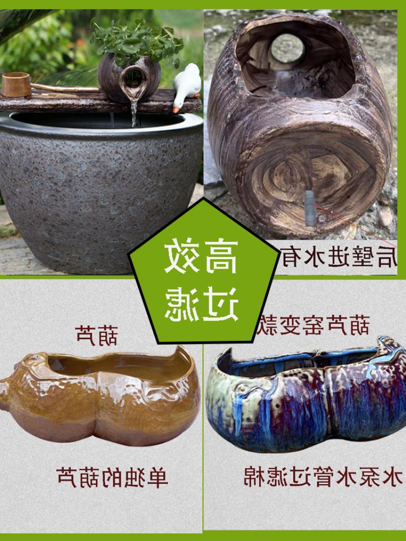 도매 창조적 인 조롱박 도자기 냄비 물 디스펜서 생선 탱크 순환 필터 세라믹 물 장식품 물 탱크 돌 물마루 물 풍경